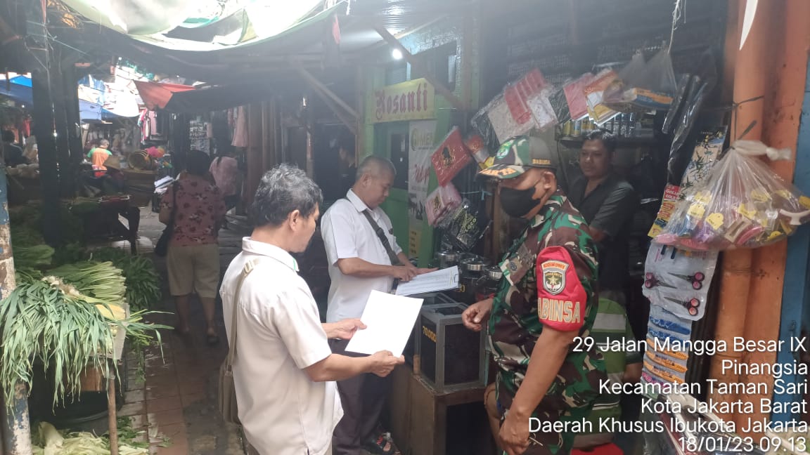 KeizalinNews Kodam Jaya, Kodim 0503/JB – PD Pasar Pecah Kulit Jalan Mangga Besar IX, Rt. 07/01, Kel. Pinangsia, Kec. Tamansari, Jakarta Barat kembali di sambangi Babinsa Koramil 01/Tamansari Kodim 0503/JB, Serda Aprianto. Rabu 18 Januari 2023.