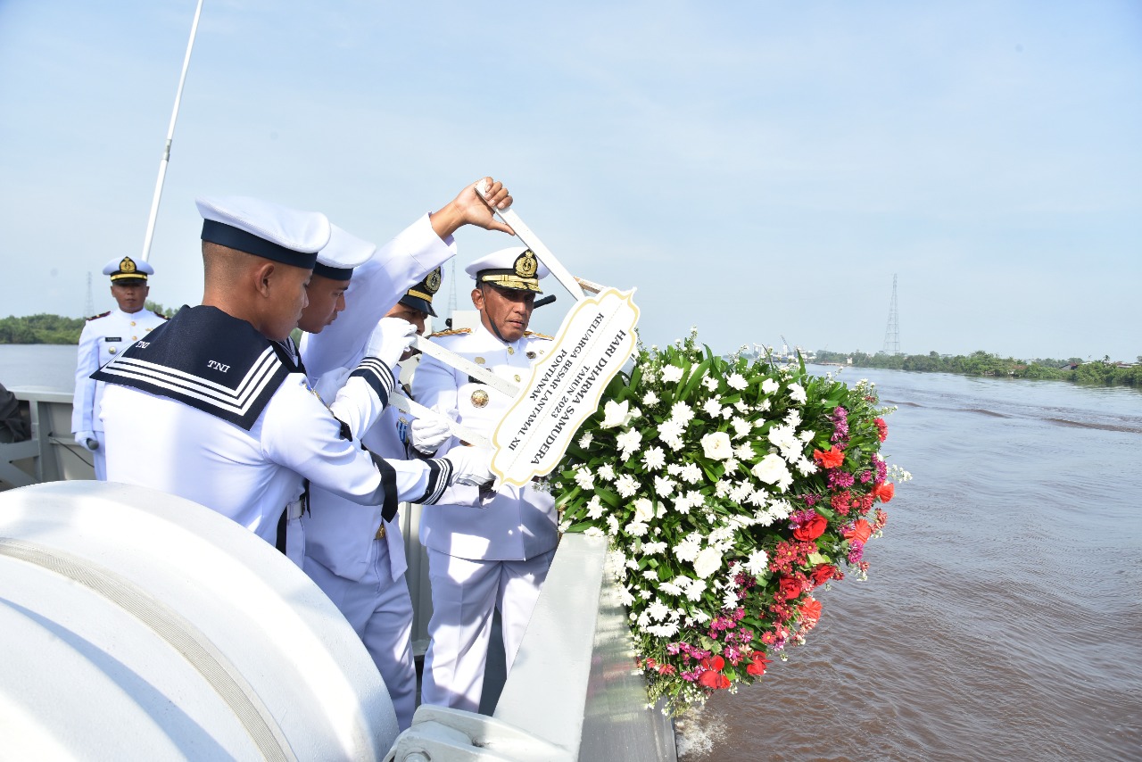 Dengan tema ”Kobarkan Semangat Kejuangan Samudera Untuk Kejayaan Indonesia,” upacara ditandai dengan pelarungan karangan bunga dan prosesi tabur bunga diatas KRI Sembilang-850 oleh Komandan Pangkalan Utama TNI Angkatan Laut XII Laksamana Pertama TNI Suharto, S.H., M.Si (Han) selaku Inspektur Upacara dan diikuti tabur bunga oleh para tamu undangan.