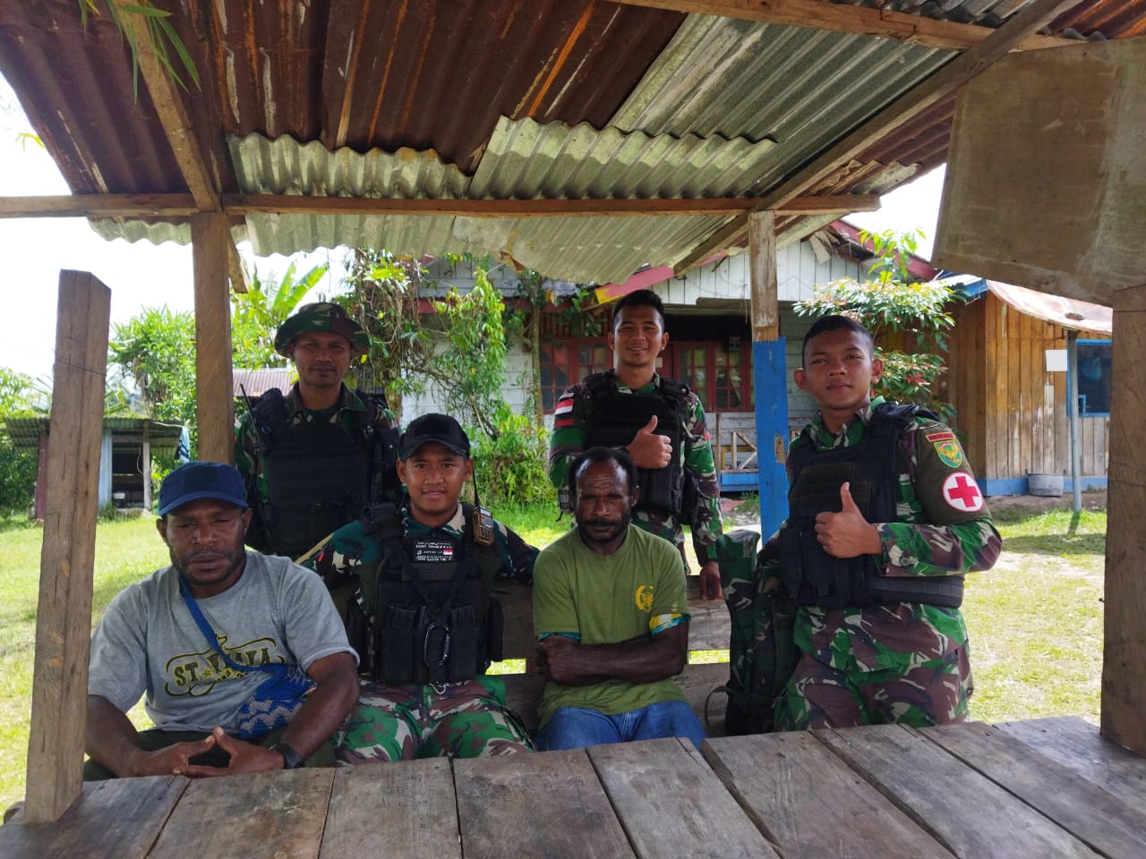 Selain melaksanakan silaturahmi dan berkomunikasi sosial yang baik dengan Kepala Kampung, Satgas Yonif Raider 142/KJ selalu memberikan pelayanan kesehatan dengan memeriksakan kesehatan warga, salah satunya saat itu adalah Bapak Yosen Sambom dan beberapa warga sekitar rumah bapak kepala kampung.