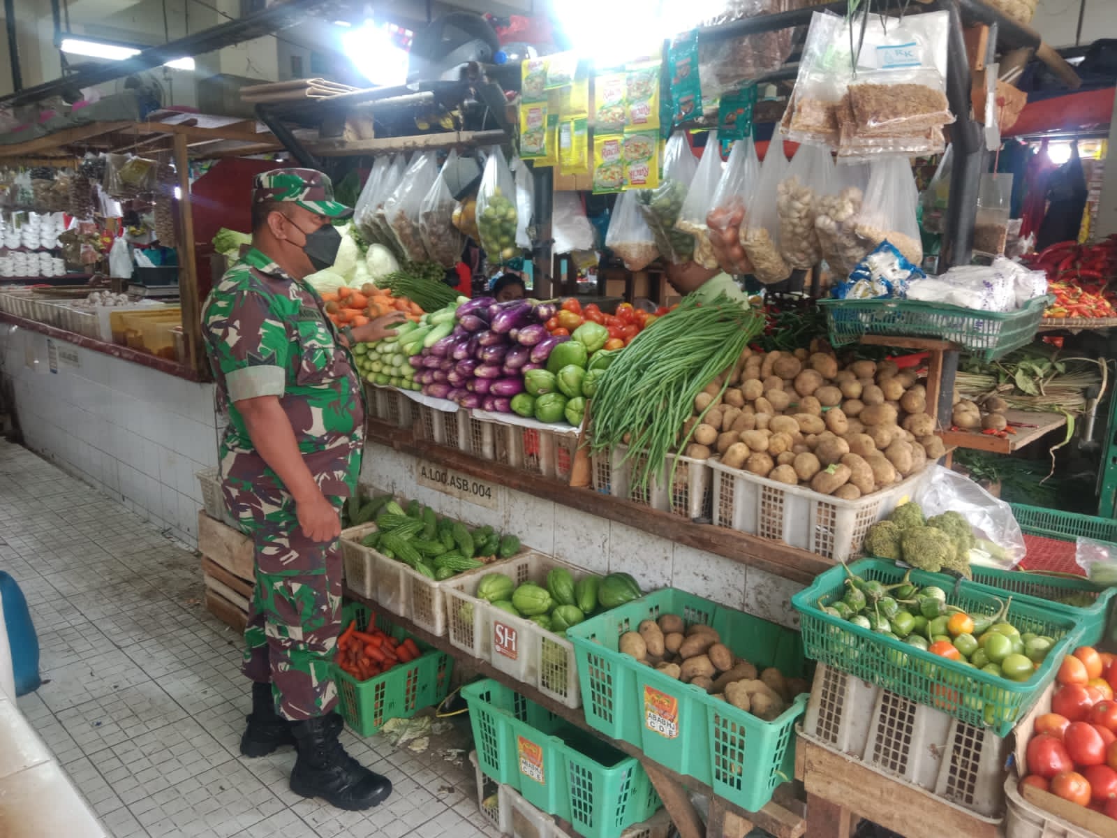 KeizalinNews Kodam Jaya, Kodim 0503/JB – Babinsa Koramil 01/Tamansari, Serka Agus Priyono sambangi pasar PD Pasar Gang Kancil Jalan Keamanan Raya, RT013/06, Kel. Keagungan Kec. Tamansari Jakarta Barat guna melaksanakan pemantauan perkembangan harga sembako di wilayah teritorial Koramil 01/Tamansari. Jum,at (27/01)