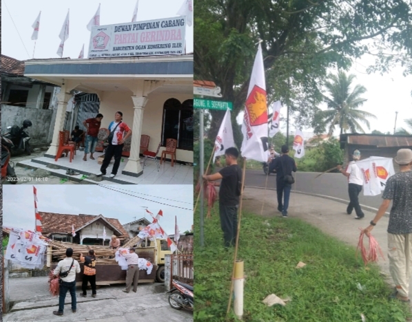 Keizalinnews.com Kabupaten OKI – Dalam rangka menyambut Hari Ulang Tahun (HUT) partai Gerindra ke-15.”Bappilu dan PAC Gerindra Kayuagung memasang Bendera berjumlah 1500 yang dipasangkan di setiap pemukiman dan jalan-jalan Raya Kabupaten OKI, Pada Rabu (1/1/2023). Pemasangan bendera itu guna menindaklanjuti perintah Partai untuk pemasangan Bendera Gerindra.