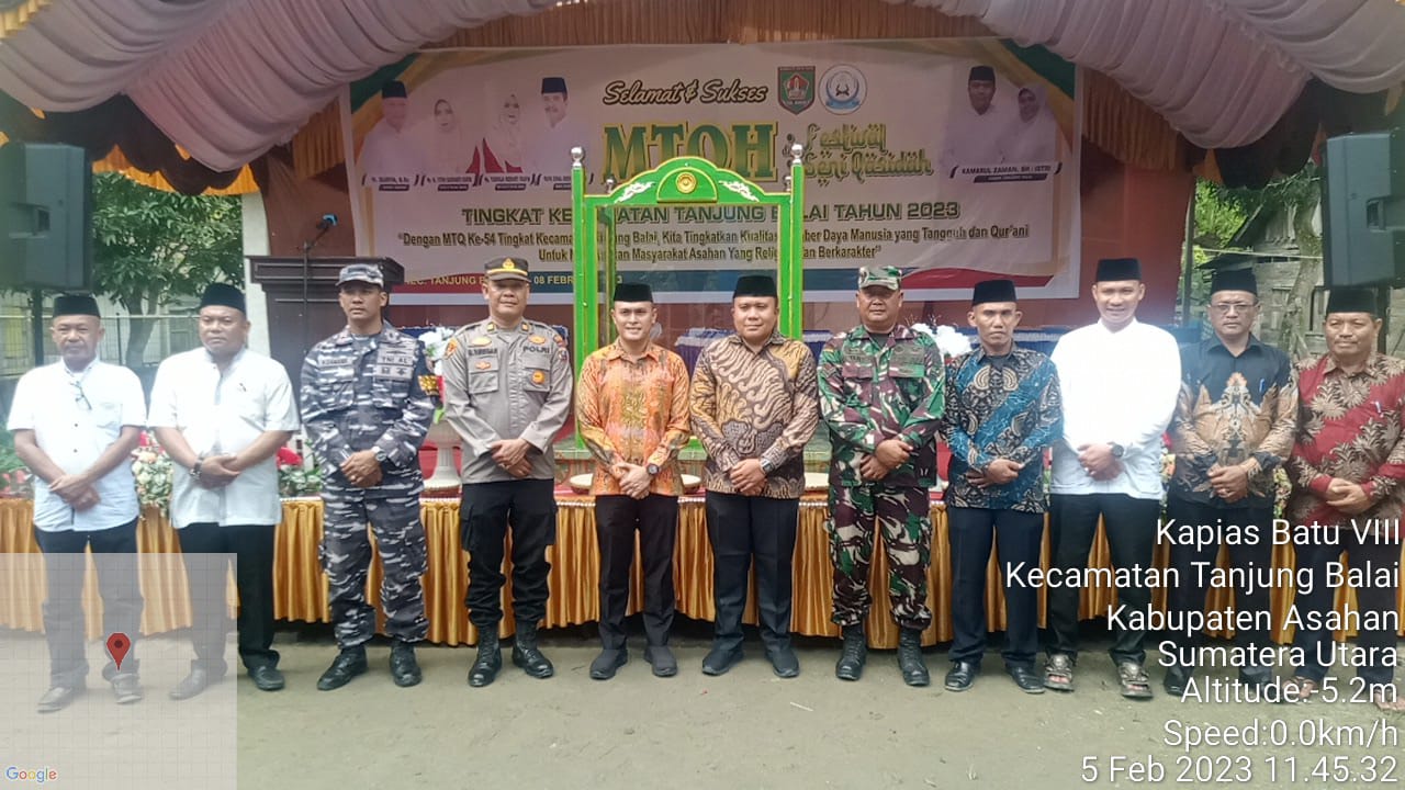 KeizalinNews.com Tanjung Balai — Babinpotmar Posal Bagan Asahan Pelda Ranto Damanik menghadiri Pembukaan Musabaqoh Tilawatil Qur’an (MTQ) Ke-54 dan Festival Seni Qasidah Tingkat Kecamatan Tahun 2023, bertempat di Halaman Masjid Al- Munfuqqin Kapias Batu 8, Kecamatan Tanjungbalai, Kabupaten Asahan, Senin (06/02/2023).