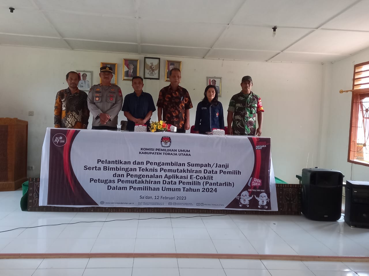Sebanyak ratusan Anggota Pantarlih Pemilu 2024 dilantik dan diambil sumpahnya yang tersebar pada 21 Kecamatan yang ada di Kabupaten Toraja Utara dengan masa kerja di mulai tanggal 12 Februari – 14 April 2023.