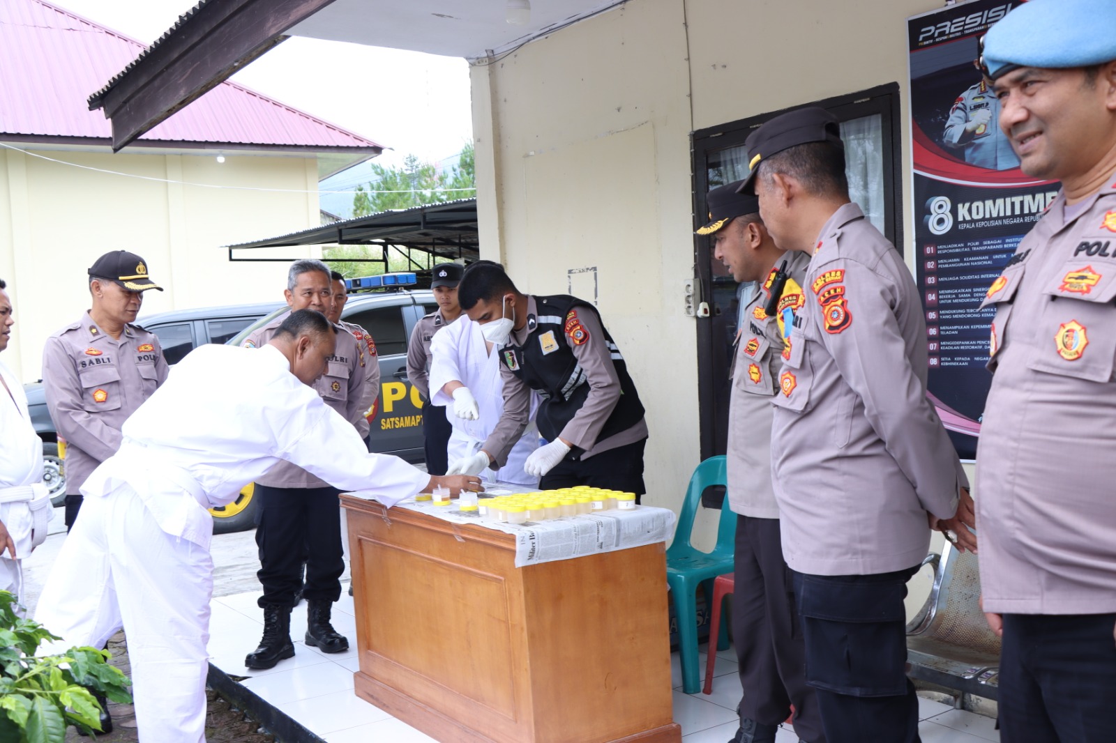 Keizalinnews.com|Redelong– Kapolres Bener Meriah AKBP Indra Novianto, S.I.K pantau langsung pemeriksaan urine tes narkoba untuk personil yang akan mengusulkan kenaikan pangkat. tes urine tersebut berlangsung di ruang Satsamapta Polres Bener Meriah Hari Rabu 15 Februari 2023.