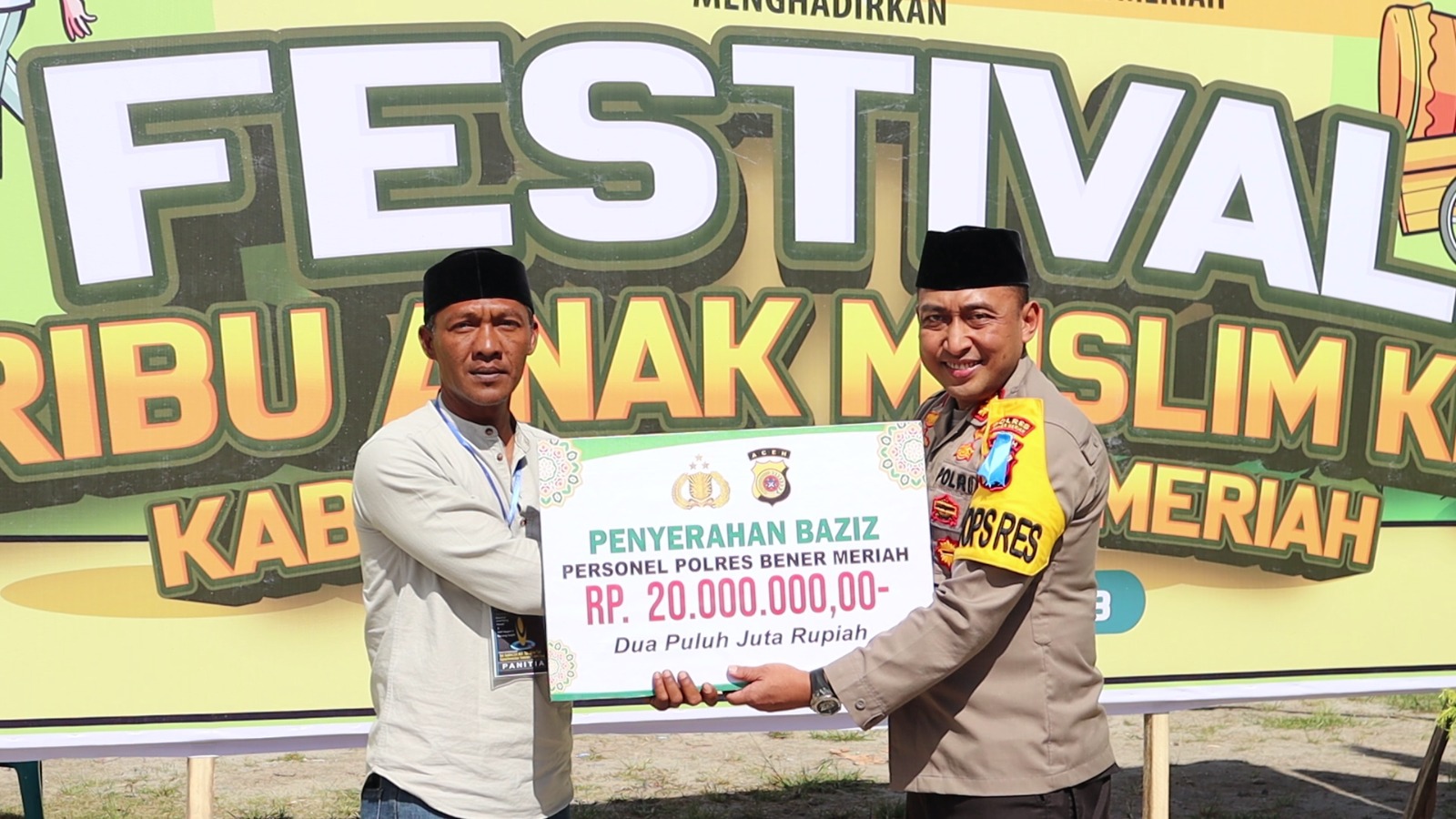 Pada kesempatan tersebut Kapolres Bener Meriah juga menyerahkan secara simbolis uang pembinaan sebesar Rp. 20.000.000 kepada kepada Lembaga Pengajian Kurma Learning House yang bersumber dari dana bazis seluruh Personil Polres Bener Meriah.