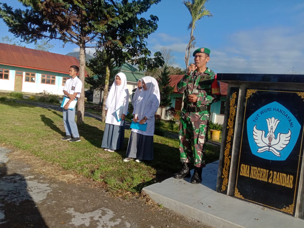 Keizalinnews.com|Redelong– Babinsa Koramil 01/Bandar Serka Roney menjadi pembina upacara bendera merah putih di lapangan SMAN 2 Bandar, Kecamatan Bandar Kabupaten Bener Meriah pada Senin 20/02/2023