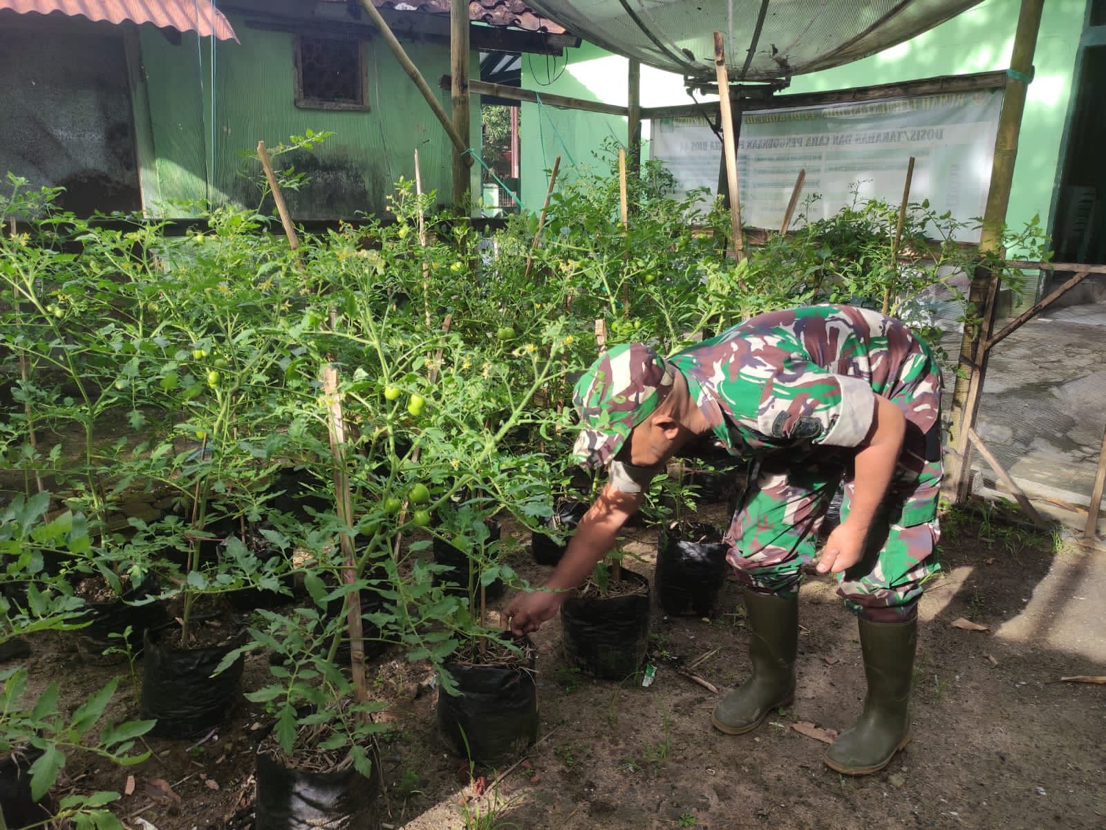 keizalinNews.com – Pandeglang – Koramil 0111/Pagelaran, Kodim 0601/Pandeglang dalam mendukung program ketahanan pangan memanfaatkan lahan kosong untuk ditanami tanaman produktif dengan media tanam polibag, Rabu (08/03/23)