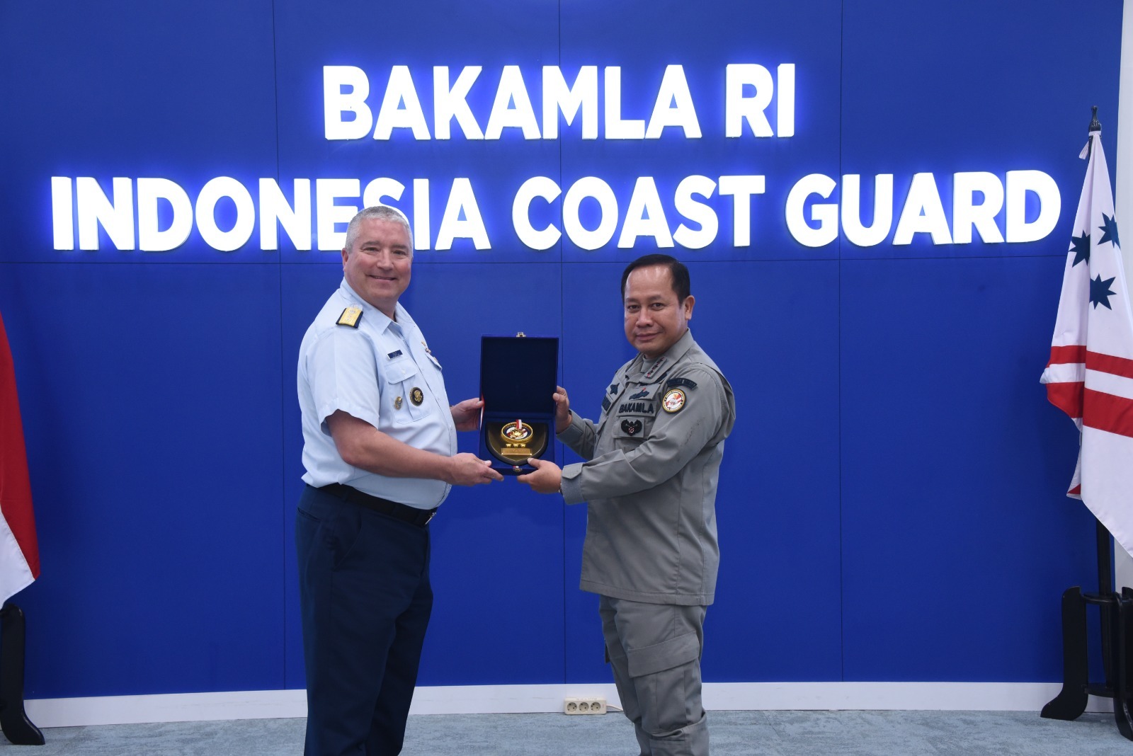 KeizalinNews.com Jakarta — Membahas perkembangan kerja sama, khususnya proses pembangunan Bakamla Training Center, Kepala Bakamla RI Laksdya TNI Dr. Aan Kurnia menerima kunjungan Deputy Commander Pacific Area United States Coast Guard (USCG) RADM Matthew W. Sibley. Pertemuan berlangsung di Aula Ary Hasibuan Mabes Bakamla RI, Jakarta Pusat, Kamis (9/3/2023).