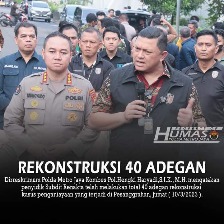 KeizalinNews.Com |Jakarta Sebanyak 40 adegan diperagakan dalam rekonstruksi yang digelar di Kompleks Green Permata Residence, Pesanggrahan, Jakarta Selatan pada Jumat (10/3/2023).
