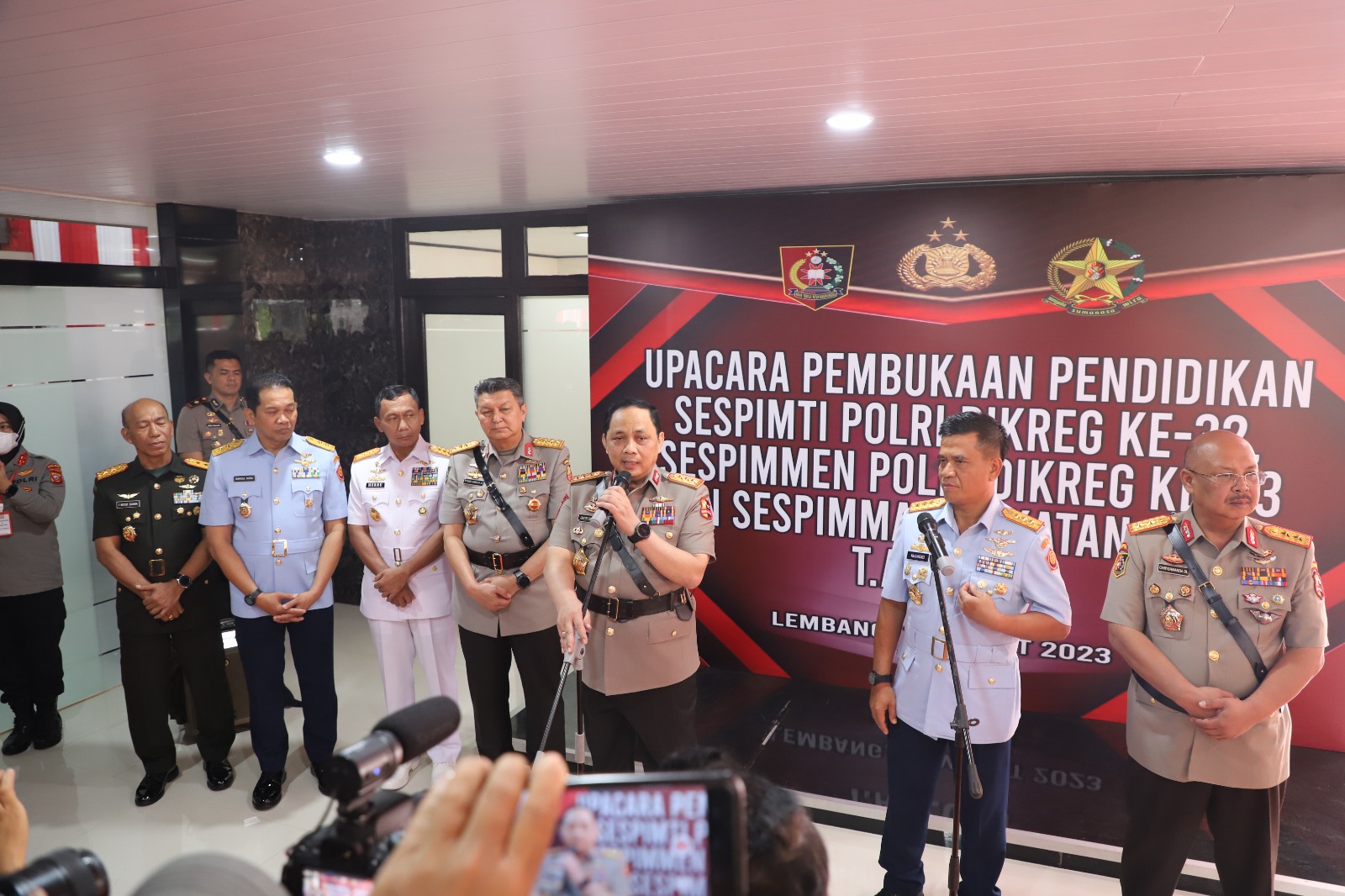 KeizalinNews.com Lembang — Panglima Armada Republik Indonesia (Pangkoarmada RI) Laksamana Madya TNI Heru Kusmanto menghadiri pembukaan pendidikan Sekolah Pimpinan (Sespim) Polri yang dikuka langsung oleh Waka Polri Komjen. Pol. Prof. Dr. Drs. Gatot Eddy Pramono, M.Si., di Sespim Lemdiklat Polri, Lembang, Kabupaten Bandung Barat, pada selasa (14/3/2023).