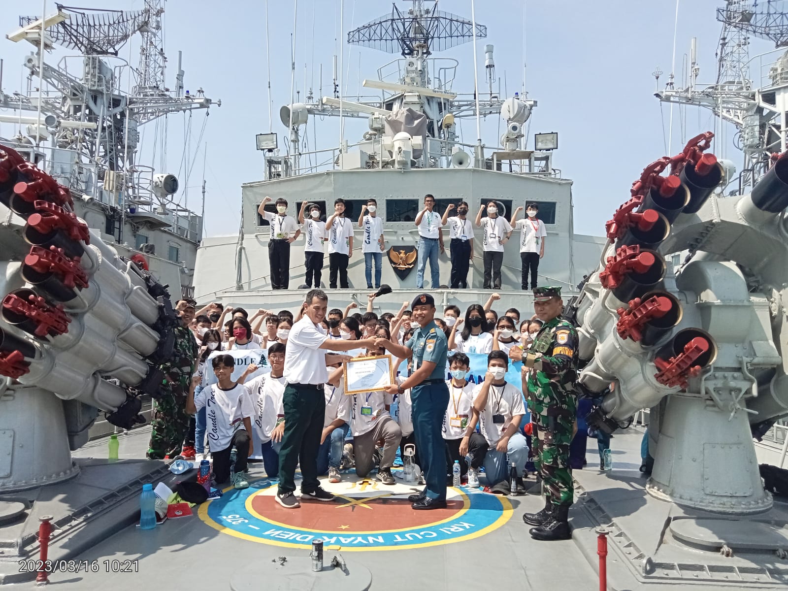 KeizalinNews.com Jakarta — TNI Angkatan Laut melalui Bintara Pembinaan Potensi Maritim Lantamal III Peltu Santoso dan Anak Buah Kapal (ABK) Kapal Perang Republik Indonesia (KRI) Cut Nyak Dien-375 dan KRI Wiratno – 379 memberikan edukasi tentang Alutsista TNI AL kepada 90 pelajar Sekolah Menengah Pertama (SMP) Candli Tree Tangerang Selatan dalam kegiatan kunjungan maritim di Ksatrian Pondok Dayung, Jakarta Utara, Kamis (16/3/2023).