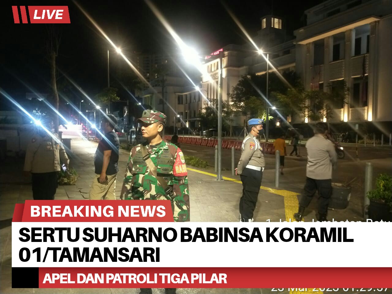 Menurut personil Koramil 01/Tamansari, Babinsa Sertu Suharno yang turut serta dalam apel dan operasi tersebut menyampaikan, kegiatan apel dan patroli gabungan tiga pilar ini dalam Rangka Antisipasi Sahur On the Road di wilayah Kec.Tamansari Jakarta Barat.