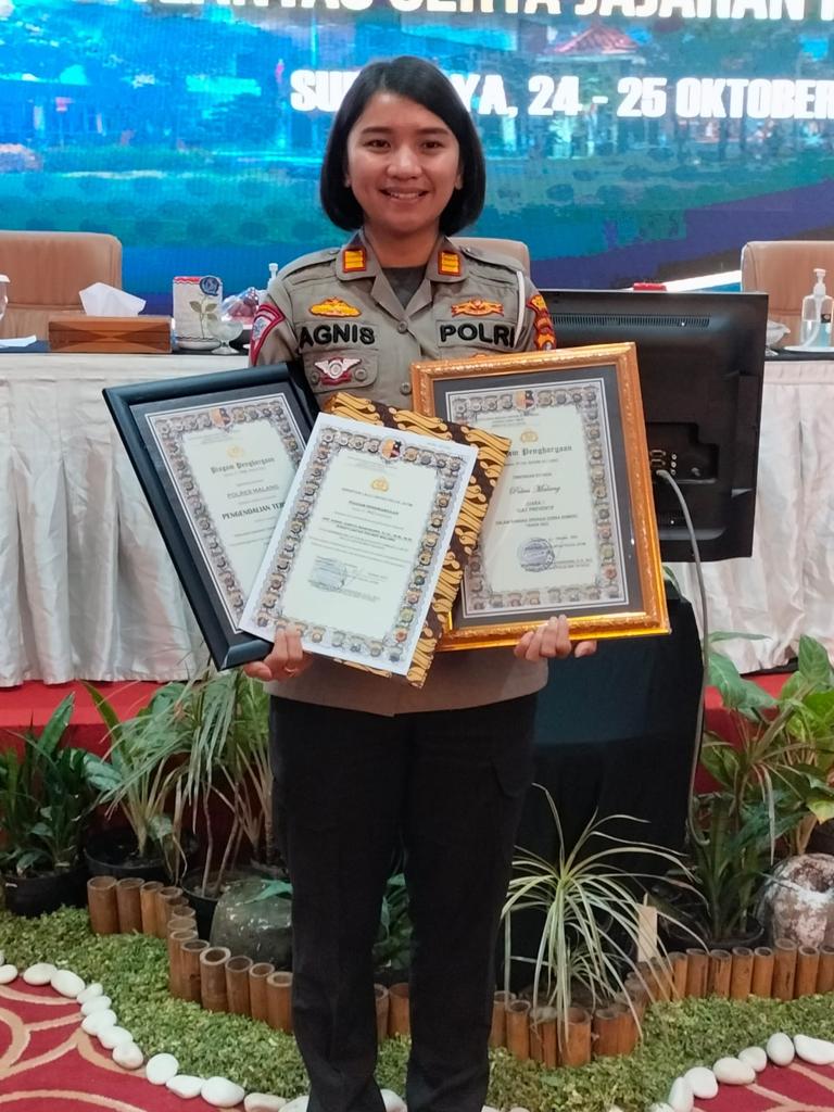 Penghargaan AKP Agnis itu diterima polwan berprestasi itu dalam kegiatan Analisis dan Evaluasi Kinerja Ditlantas serta jajaran Polda Jatim.