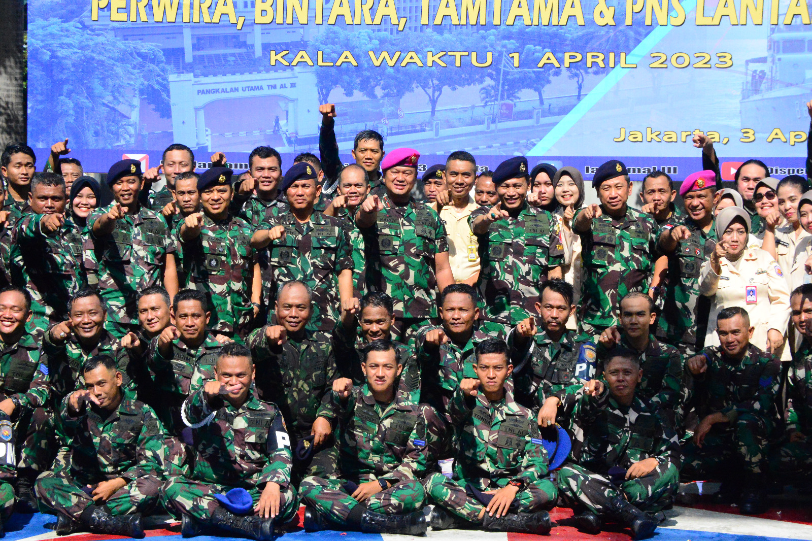 KeizalinNews.com Jakarta — Komandan Pangkalan Utama TNI AL (Danlantamal) III Jakarta Brigjen TNI (Mar) Harry Indarto, S.E., M.M., memimpin pelaksanaan upacara kenaikan pangkat kala waktu 01 April 2023, di Lapangan Mako Lantamal III Jl. Gunung Sahari No.2 Ancol Jakarta Utara, Senin (03/04/2023).