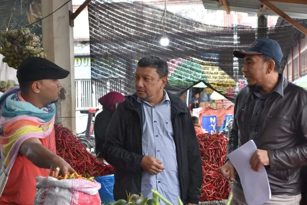 Pj. Bupati Ir. Teuku Mirzuan, MT melakukan peninjauan harga barang kebutuhan pokok secara langsung di Pasar Paya Ilang, Sabtu (21/01/2023).