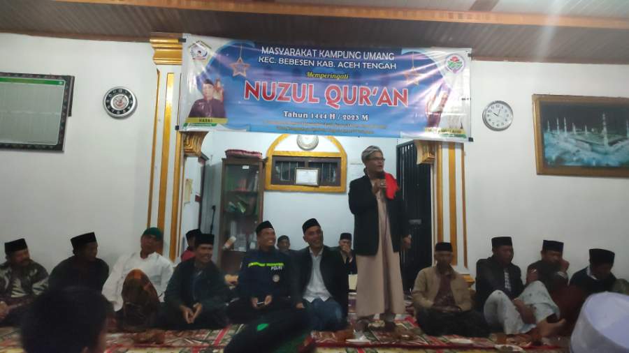 Keizalinnews.com|Takengon– Teungku Yahya Arias mengisi Tausiyah menyambut Malam Nuzul Qura’n Di Meunasah Puset Kampung umang Kecamatan Bebesen Kabupaten Aceh Tengah.