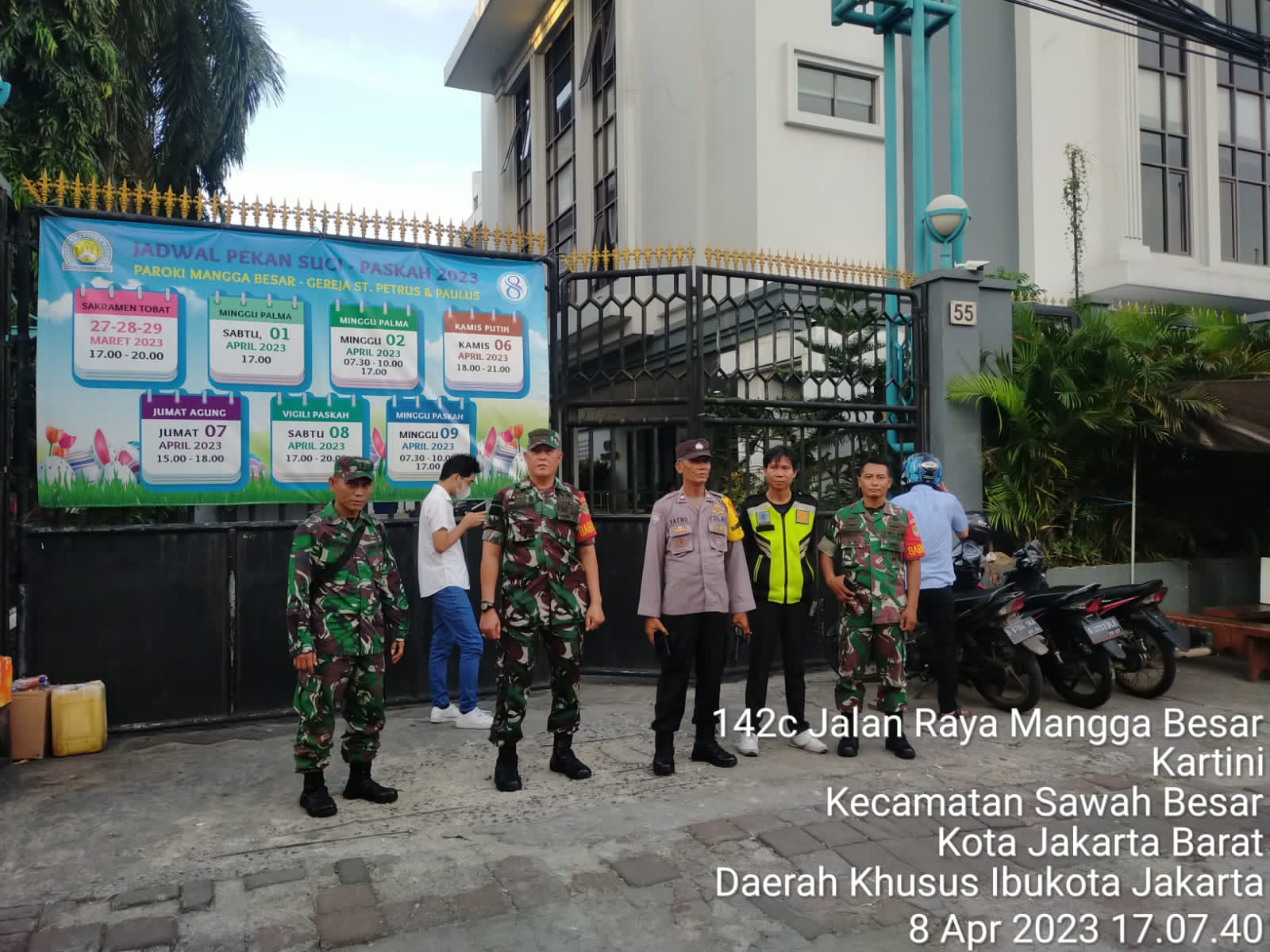 di gereja St. Petrus dan Paulus Jalan Mangga Besar Raya No.55 RT. 003/003, Kelurahan Tangki di monitoring 3 personil Babinsa, Peltu Erwin.R, Sertu Suharno dan Sertu Jumadi.
