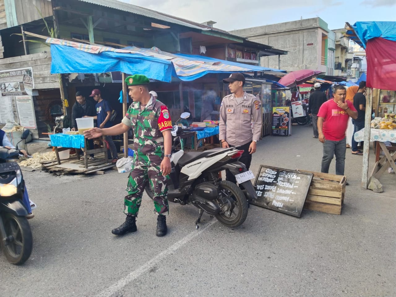 Kami dari TNI-Polri bersama dinas terkait mengantisipasi hal tersebut di atas sehingga setiap sore hari kami rutin melaksanakan pengamanan guna memberikan rasa aman sekakigus pemantauan pasar untuk memastikan warga masyarakat yang berbelanja merasa nyaman serta membantu mengatur arus lalulintas agar tidak terjadi kemacatan”. pungkasnya.