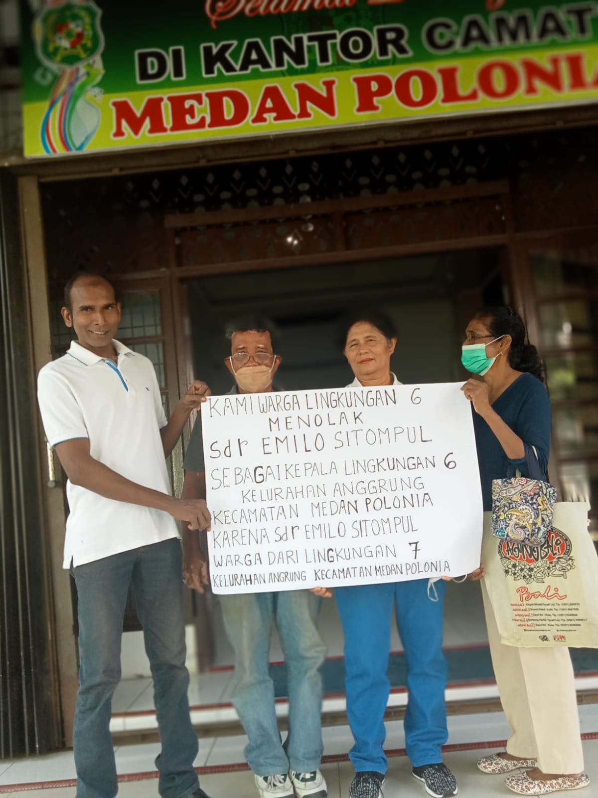 Seorang warga bernama Margaretha Marpaung menuturkan, ”Kami mayoritas warga dari lingkungan VI Kel. Anggrung datang ke kantor Camat Medan Polonia untuk meminta agar Camat Polonia dan Lurah Anggrung supaya membatalkan hasil pemilihan kepling, karena kepling yang terpilih yang merupakan bukan dari warga lingkungan VI, sehingga kami yakin bahwa beliau tidak mau mengenal warga lingkungan VI secara keseluruhan, bahkan warga berharap agar kepling terpilih dapat diganti. Ini juga artinya Warga Menolak keras pemilihan Kepling yang baru ditetapkan dan bahkan sudah dilantik oleh Camat serta Lurah di Kecamatan Medan Polonia, karena diduga telah curang dan minta pemilihannya agar ditinjau ulang, udah capek kami bolak balik kemari (Kantor Camat) namun ada saja alasan yang diberikan oleh Sekcam dan Lurah yang sangat tidak masuk akal”, ucap Margaretha secara tegas.