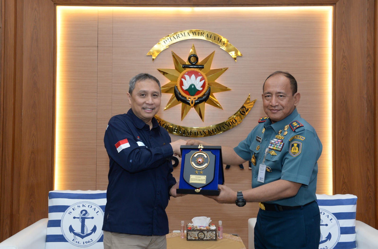 KeizalinNews.com Jakarta — Komandan Sekolah Staf dan Komando TNI Angkatan Laut (Danseskoal) Laksamana Muda TNI Yoos Suryono Hadi, M.Tr(Han)., M.Tr.Opsla., CHRMP. menerima kunjungan dari Pimpinan Deputi Dukungan Bisnis Satuan Kerja Khusus Pelaksana Kegiatan Hulu Minyak dan Gas Bumi (SKK MIGAS) Bapak Rudi Satwiko bertempat di Ruang Transit Markas Komando (Mako) Gedung Samadikun Seskoal, Cipulir, Kebayoran Lama, Jakarta Selatan. Kamis (13/04/23).