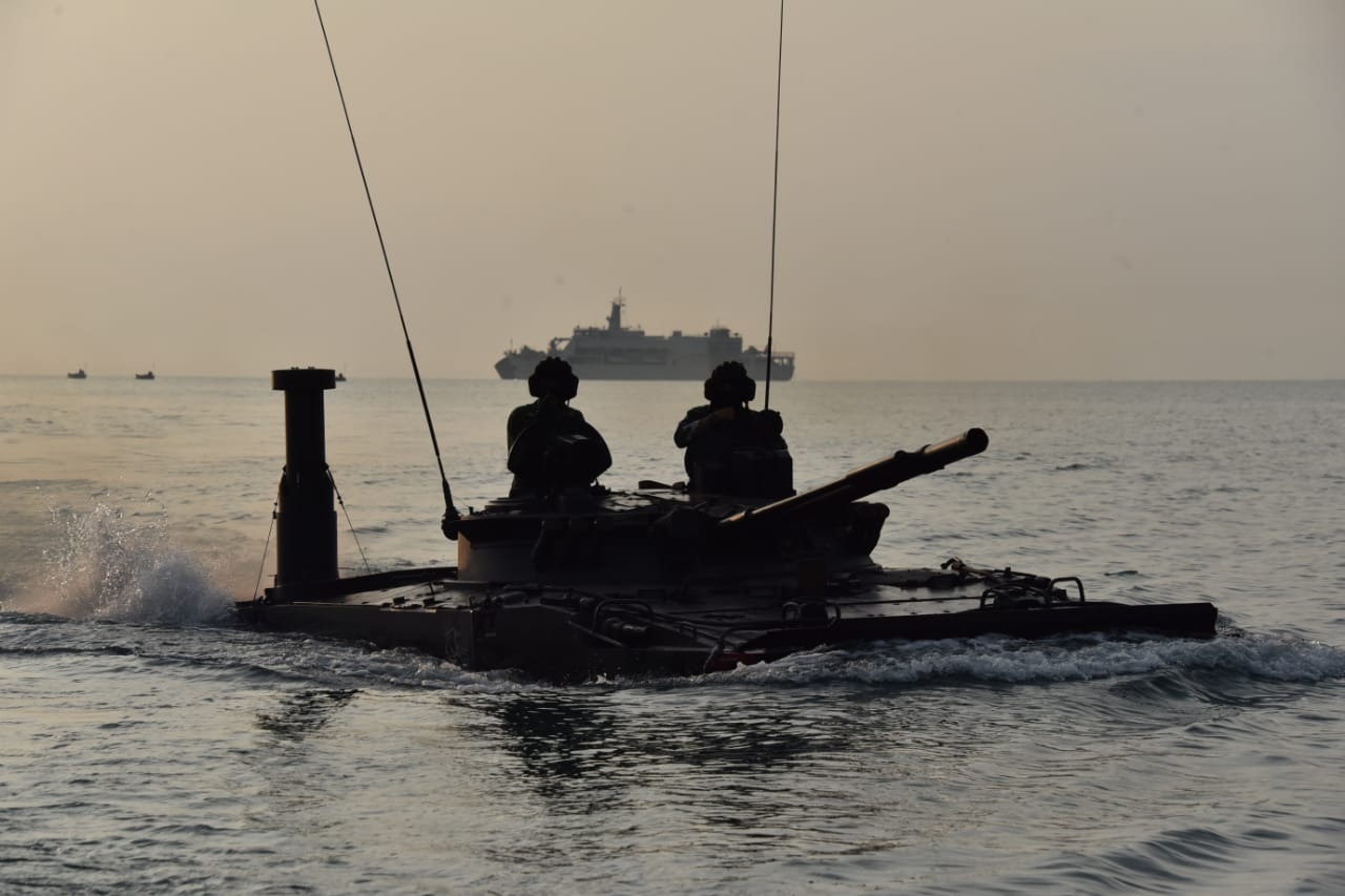 Selama pelayaran menuju Batam Satgas Operasi Trisila Koarmada RI 2023 melaksakan berbagai materi latihan untuk mempertahankan keterampilan prajurit serta kerjasama antara unsur operasi hingga latihan pendaratan amfibi di Dabo Singkep (13/04/23).