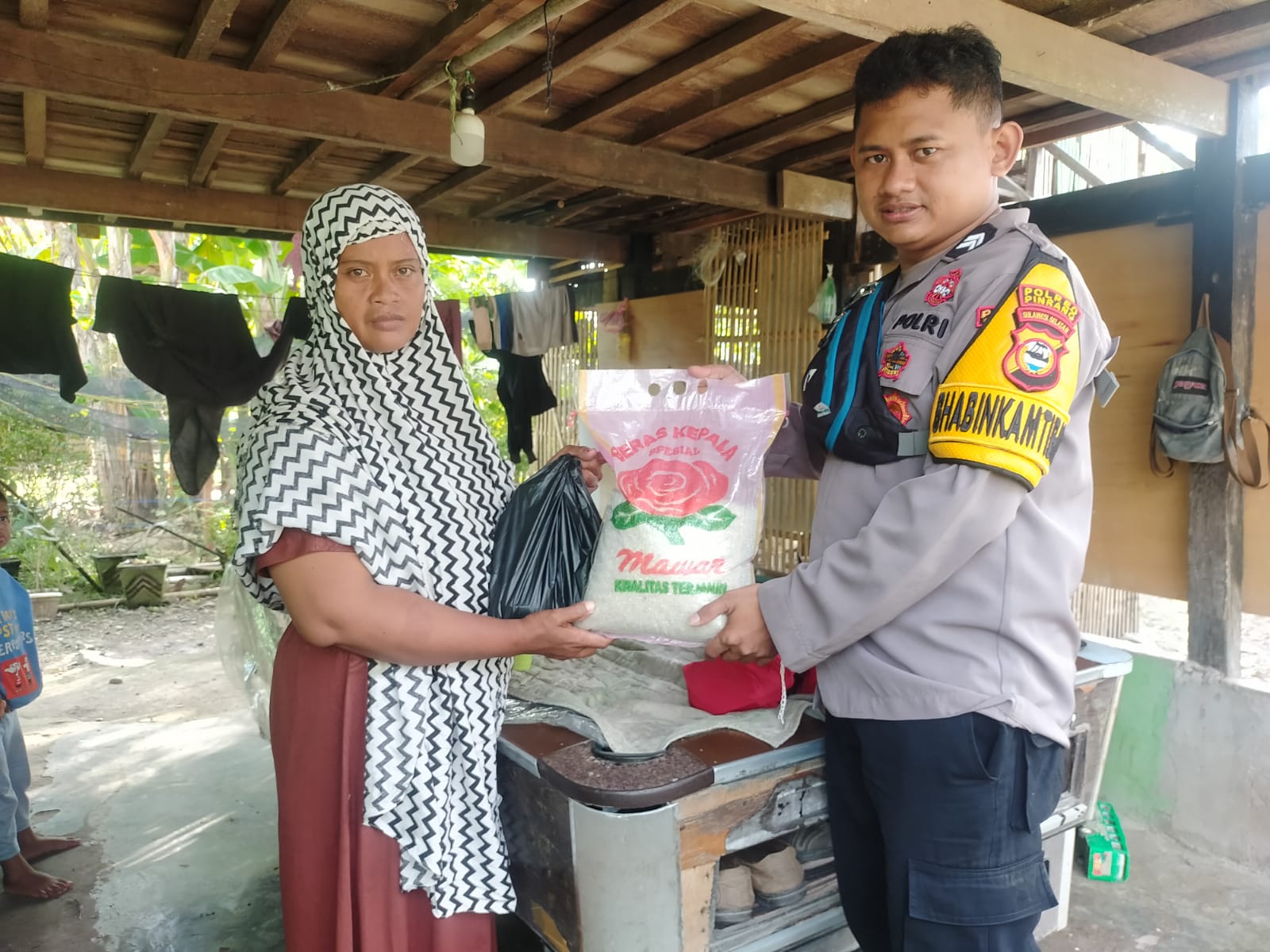 Dalam kegiatan ini Briptu Soehardiman Tamrin memberikan Tali Asih dalam bentuk sembako kepada keluarga ibu hasnah