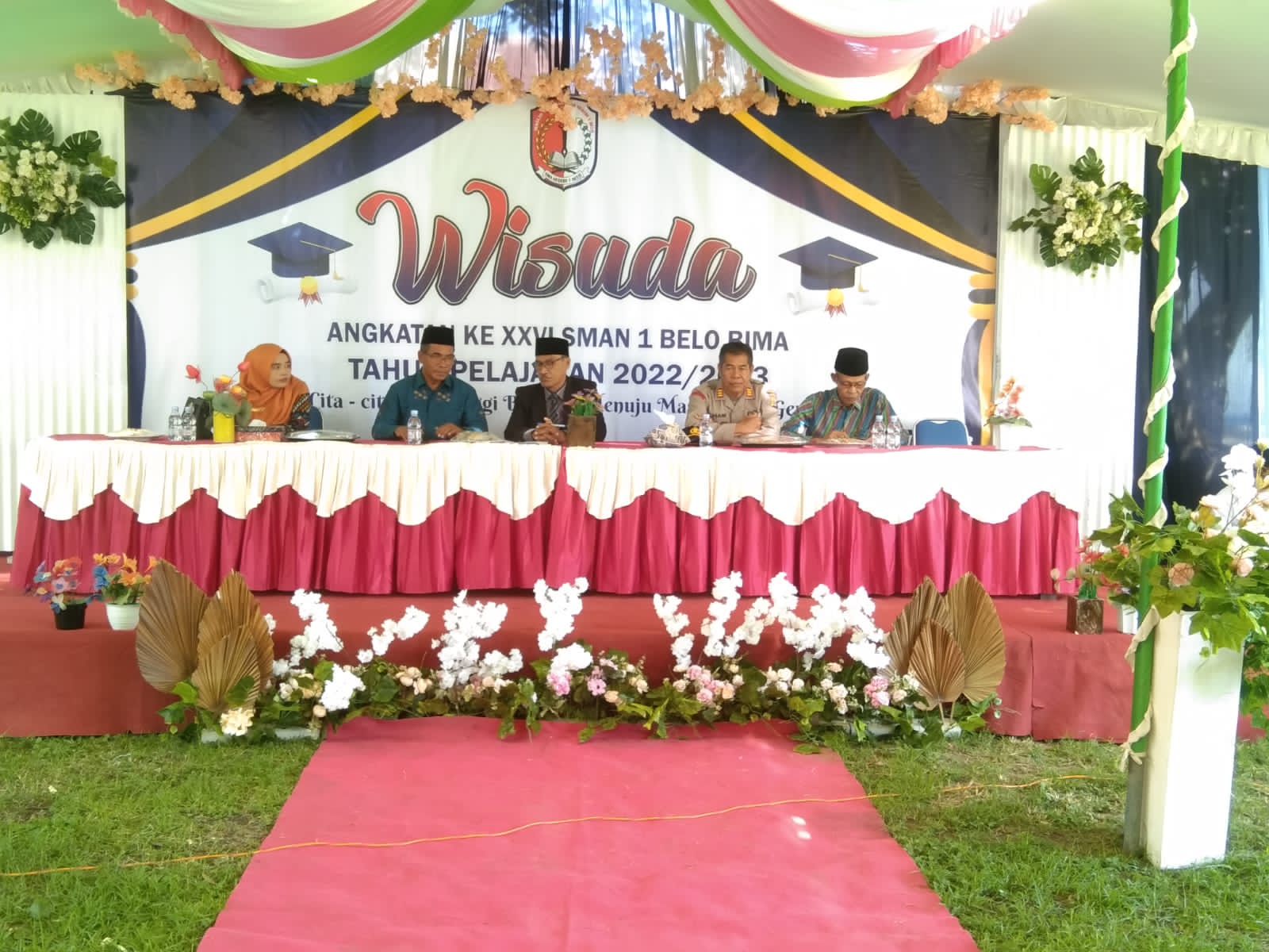 Acara wisuda yang di gelar di Aula SMAN 1 Belo ini, tampak dihadiri ratusan wali murid serta secara langsung dihadiri Camat Belo Drs. Ruyani, Kapolsek Belo Akp Ilham, Ketua Komite H. Rusman, S.Pd, Kepala Sekolah M.Nor, S.Pd dan juga semua guru di SMAN 1 Belo.