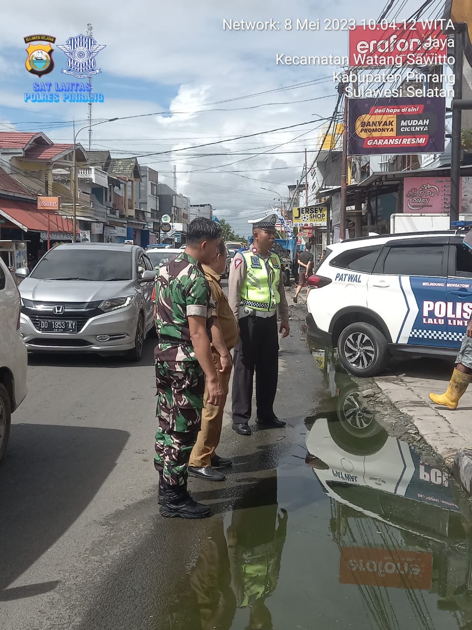 KeizalinNews.Com, PINRANG (Sulsel) — Unit Kamsel Sat Lantas Polres Pinrang yang dipimpin oleh Kanit Kamsel Aiptu Harmin Lakkase bersama Babinsa dan pihak Dinas lingkungan hidup Kabupaten Pinrang melakukan kegiatan himbauan kebersihan jalan kepada para penjual bakso yang berlokasi di jalan Sultan Hasanuddin Pinrang.