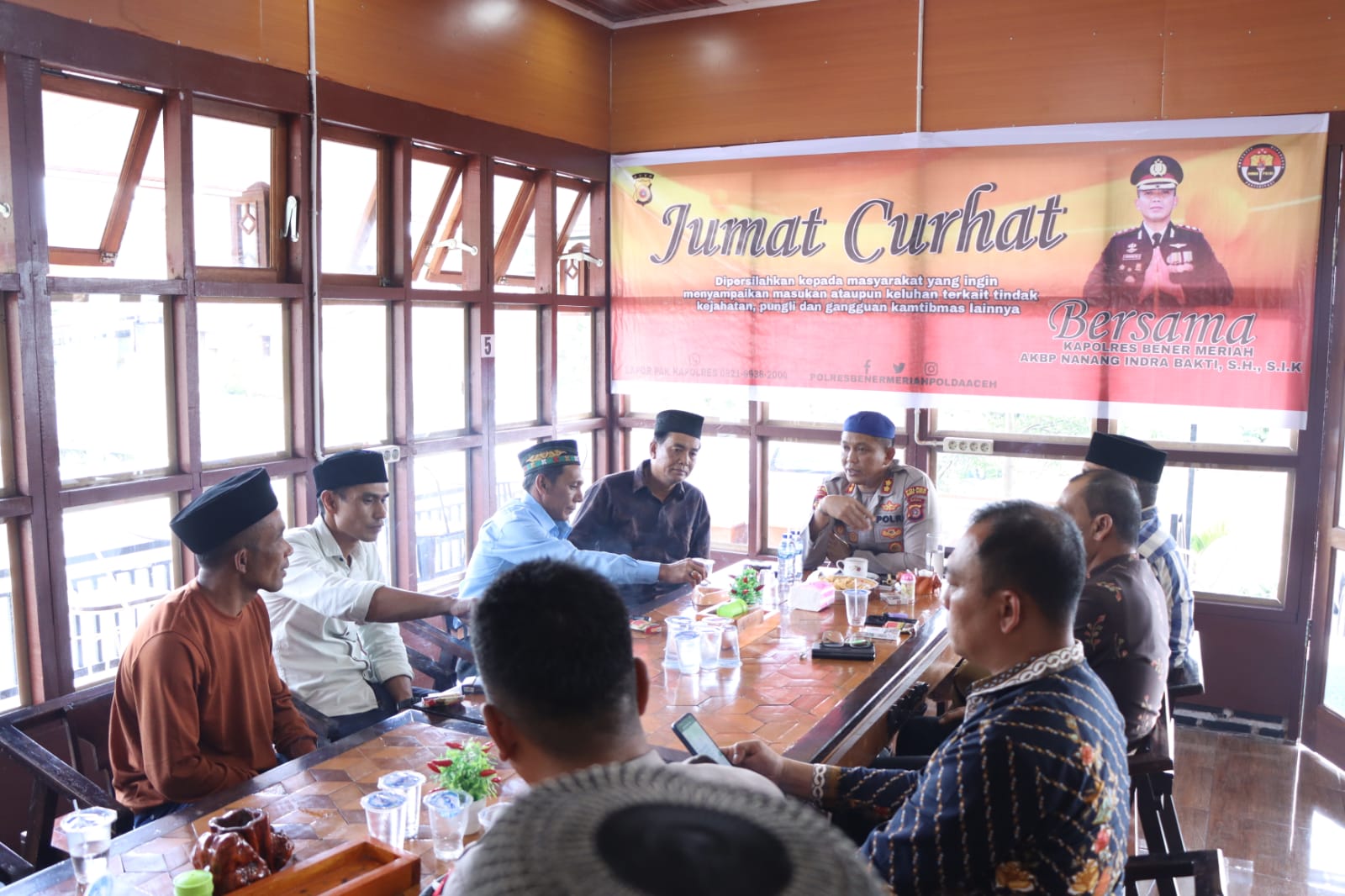 Jumat curhat kali ini di gelar di Ara dor Kecamatan Timang Gajah Kabupaten Bener Meriah, Jumat 26 Mei 2023.
