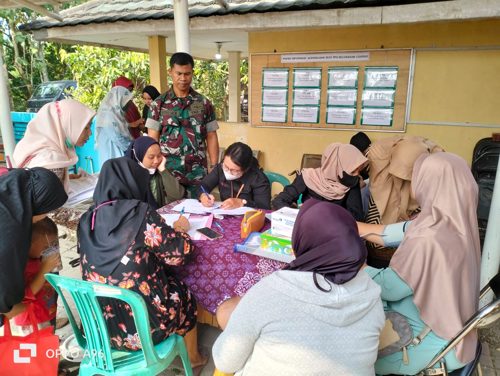 KeizalinNews.Com – Cilegon – Kegiatan KB Kesehatan TMMD ke 116 Kodim 0623/Cilegon laksanakan pelayanan kesehatan pada masyarakat di Kantor Posyandu Kelurahan Cikerai Kecamatan Cibeber Kota Cilegon Banten, Jum’at (26/05/2023).