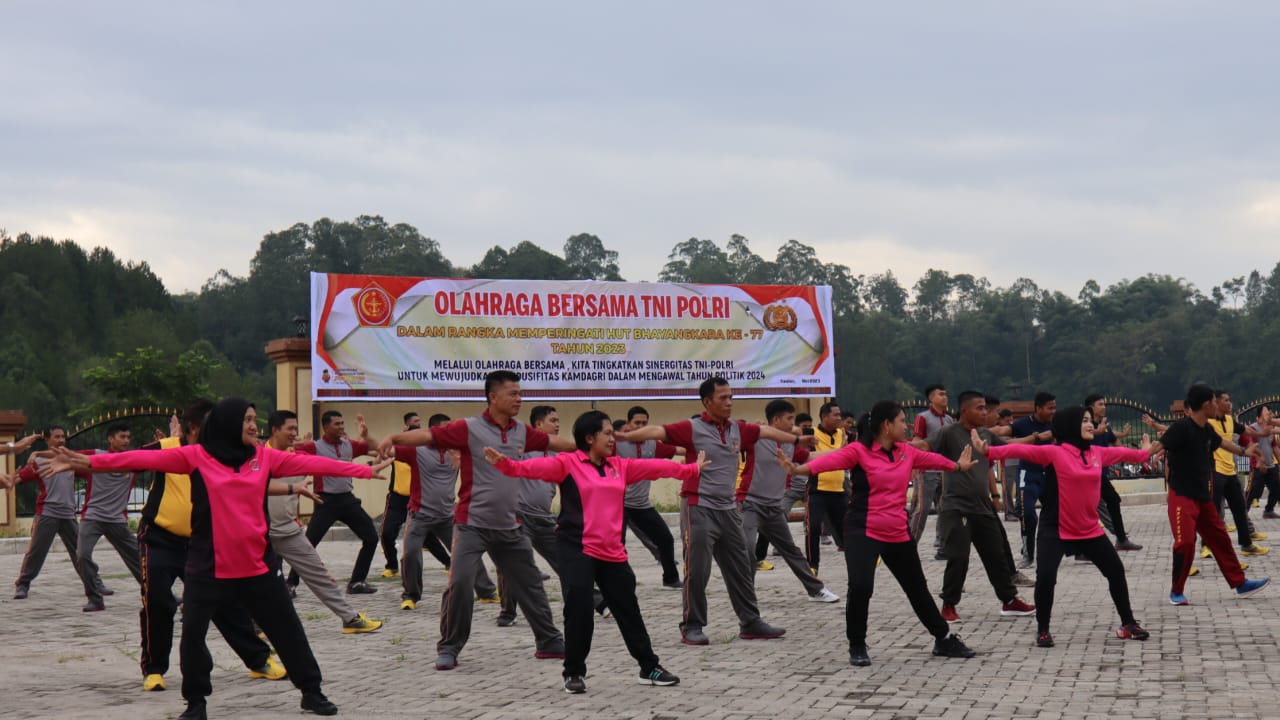 Olahraga bersama TNI-Polri yang digelar dilaksanakan dalam rangka memperingati Hari Ulang Tahun (HUT) Bhayangkara ke-77 yang jatuh pada tanggal 1 Juli 2023 mendatang.