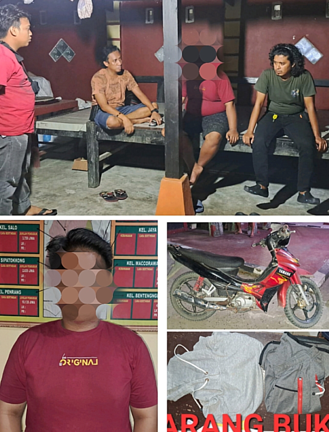 Setelah mengetahui ciri pelaku dari keterangan beberapa saksi mata dilokasi kejadian selanjutnya unit Resmob Polres Pinrang langsung bergerak cepat ke tempat persembunyian pelaku FR di kampung Bolapattapuloe Pinrang untuk diamankan.”