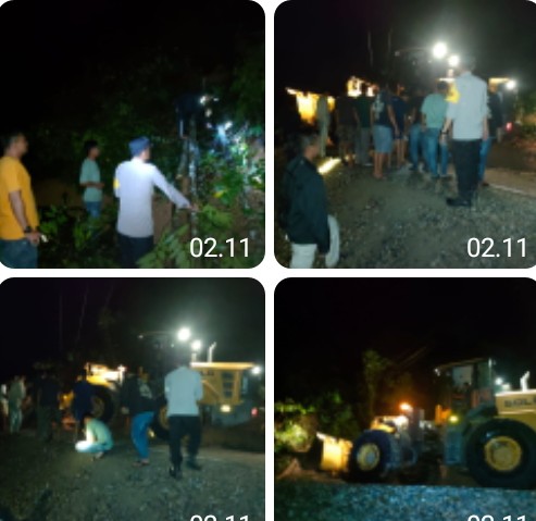 Kapolsek Serbajadi AKP Sudirman, S.E. bersama sejumlah personelnya mendatangi lokasi tanah longsor di jalan lintas Peunaron-Lokop, tepatnya di Dusun Ketibung, Desa Bunin, Kecamatan Serbajadi, Kabpuaten Aceh Timur, yang terjadi pada hari Jum’at, (02/06/2023) sekira pukul 19.30 WIB.