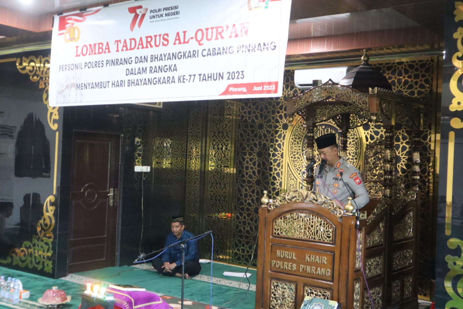 KeizalinNews.Com, Pinrang (Sulsel) — Polres Pinrang, mengadakan Lomba Membaca Al-Qur’an tingkat Polres Pinrang dalam rangka meningkatkan relegius dan rangkaian HUT Bhayangkara ke 77. Jumlah peserta lomba sebanyak 22 orang anggota Polres dan polsek jajaran beserta 18 ASN dan bhayangkari.Rabu(7/06/2023)