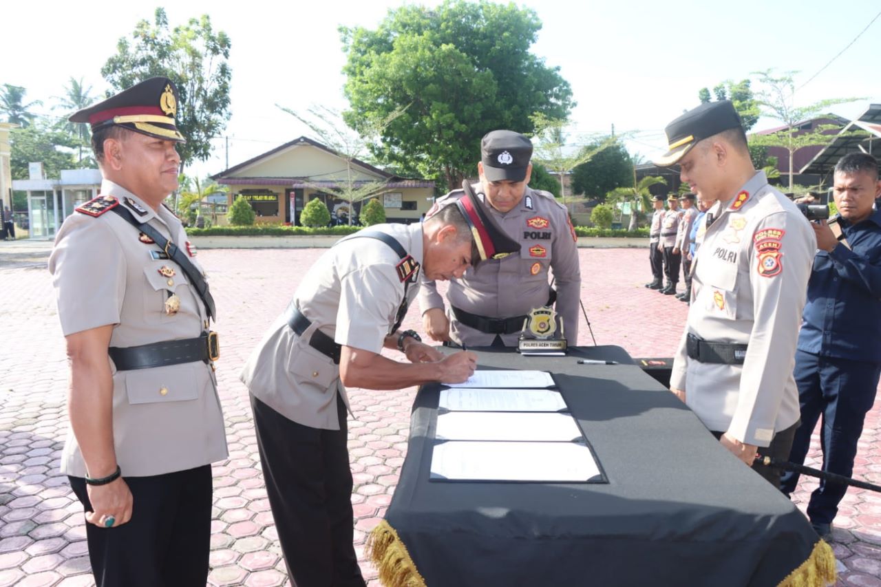 Bertempat di Lapangan Apel Sarja Arya Racana, Kapolres Aceh Timur AKBP Andy Rahmansyah, S.I.K. pimpin secara langsung kegiatan serah terima jabatan Wakapolres, Kabag Ops, Kasat Intel, Kapolsek Peureulak, Kapolsek Idi Rayeuk, Kapolsek Darul Aman, Kapolsek Simpang Ulim, Kapolsek Indra Makmu dan Kapolsek Peureulak Timur. Kamis, (08/06/2023).
