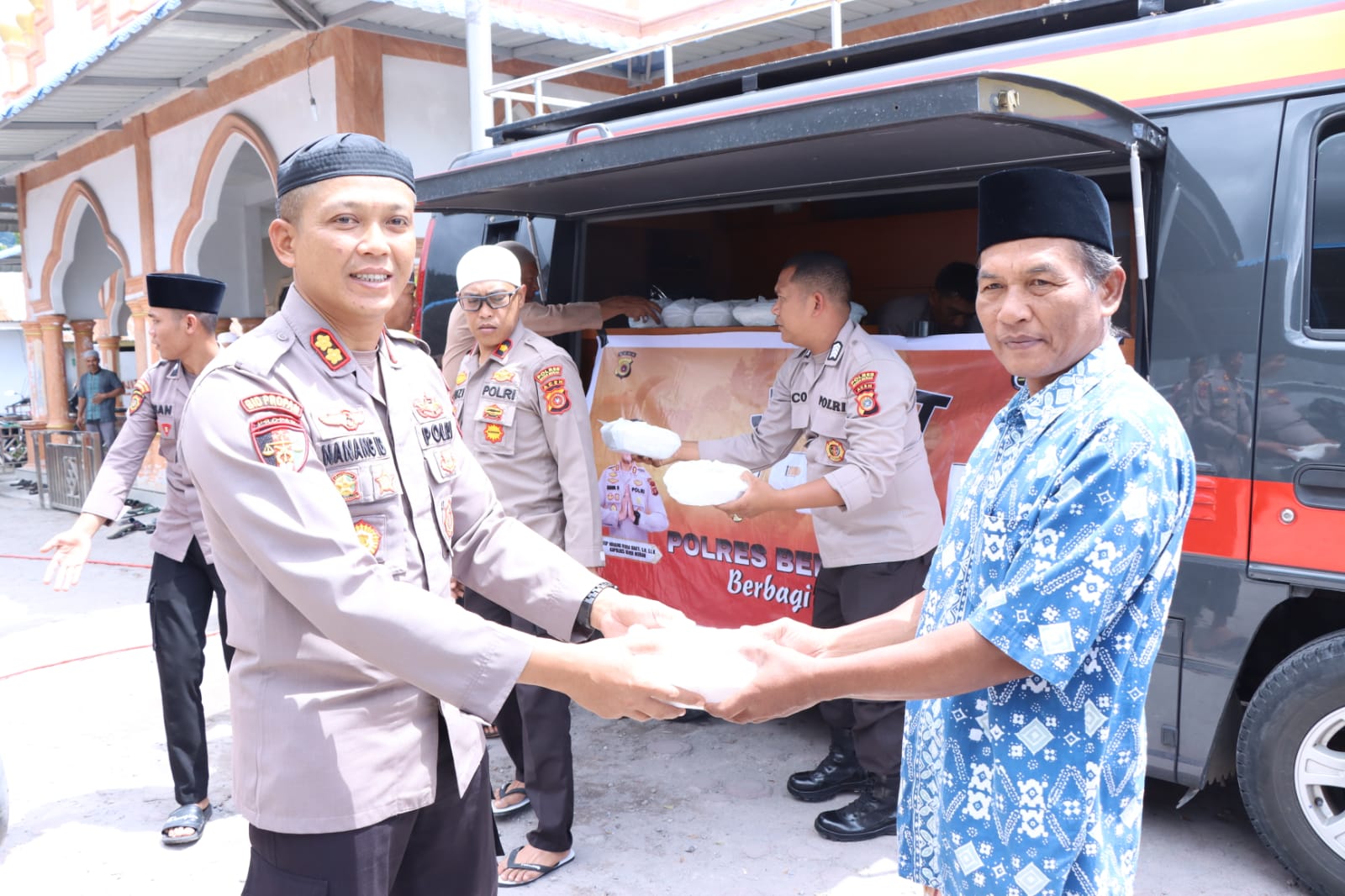 Kapolres Bener Meriah AKBP Nanang Indra Bakti, SH, SIK menyampaikan Kegiatan Jumat Bersih ini berupa membagikan Nasi Kotak kepada Jamaah Jumat yang ada di Masjid Mardhatillah Kampung Blang Tampu, Kecamatan Bukit