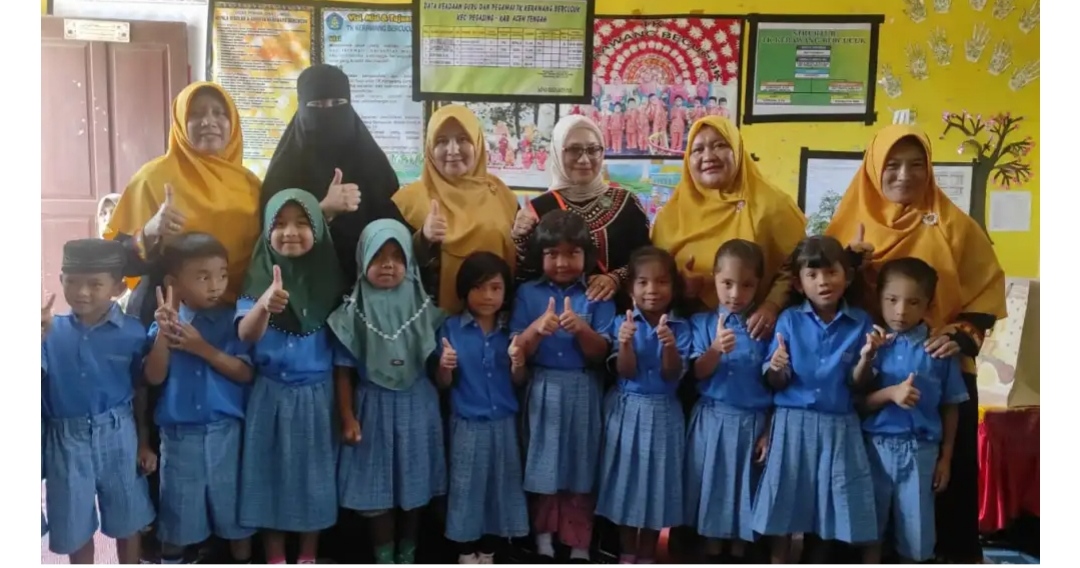 Keizalinnews.com|Takengon– Bunda PAUD Aceh Tengah, Ny. Novita Mirzuan bersama jajaran pengurus Pokja PAUD Aceh Tengah kunjungi, Taman Kanak-Kanak Kerawang Bercucuk, yang terletak di Jalan Takengon – Isaq, Kampung Kedelah, Kecamatan Pegasing Kabupaten Aceh Tengah, pada Senin (22/05/2023).