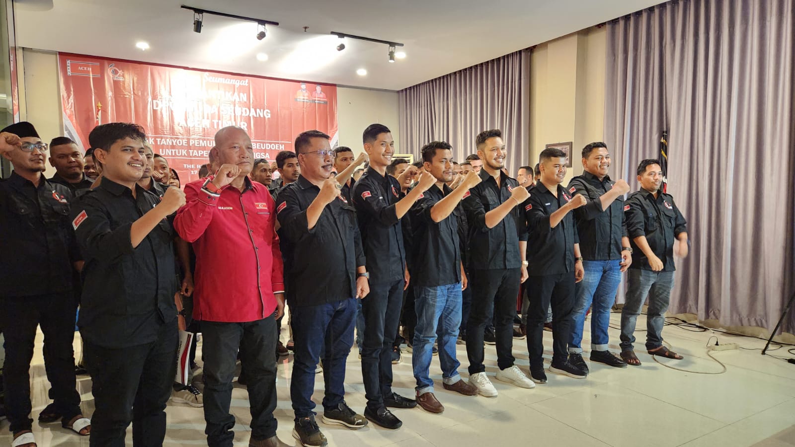 Pengurus Pusat Partai Aceh Suadi Sulaiman (Adi Laweung), Ketua DPW-PA Aceh Timur Zulfazli Aiyub, Penasehat DPP Muda Sudang Aceh Samsul Bahri (Sarjev), Ketua Muda Seudang Aceh Agam Nur Muhajir, S.IP, Pengurus Muda Seudang Aceh, Anggota DPRK Aceh Timur fraksi Partai Aceh, Pengurus DPW PA Aceh Timur, Panglima Wilayah, dan Panglima Sagoe serta tamu yang diundang.