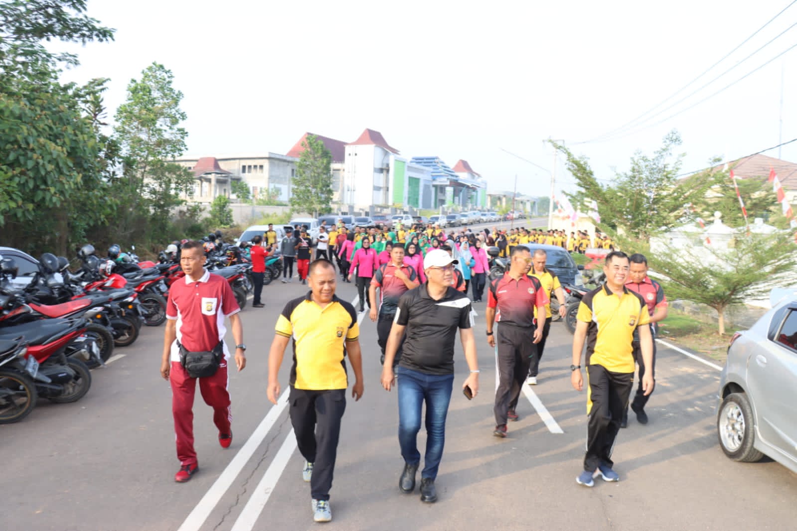 Kegiatan jalan santai dan senam yang diikuti Bupati PALI Dr Ir H Heri Amalindo,MM diwakili assisten 1 bidang pemerintah dan kesejahteraan Kabupaten Pali H.Andre Fajar Wijaya S.Si.M.Si, CSEP, Kapolres PALI AKBP Khairu Nasrudin,S.I.K,M.H,Para PJU Polres PALI, Kapolsek Jajaran Polres PALI, seluruh personil Polres PALI, Ketua Bhayangkari Cabang Pali Ny.Ratna Khairu beserta jajarannya, Brimob Batalyon D pali ,Koramil 404-03 Talang Ubi dan Insan Pers Kabupaten Pali.
