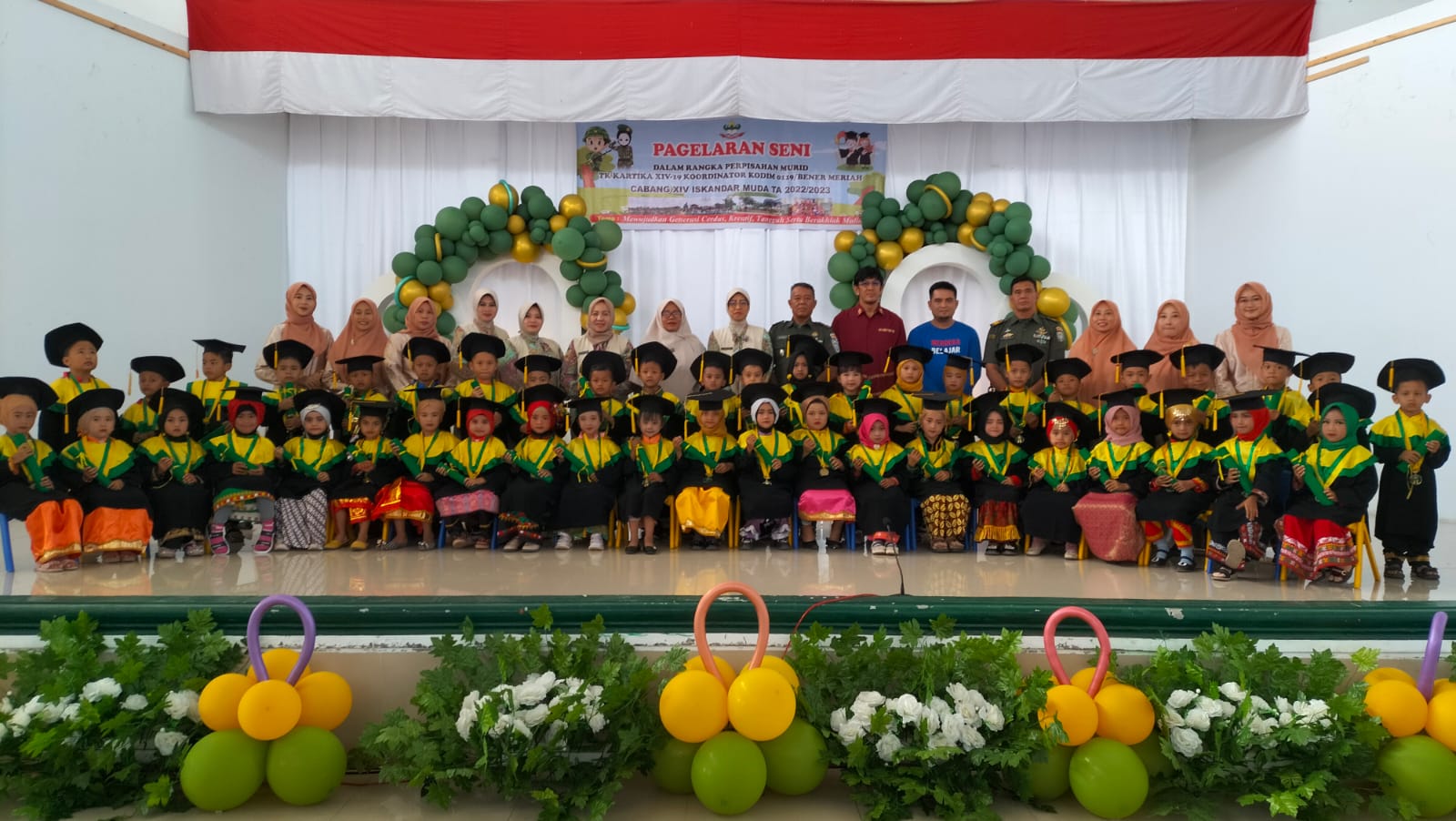 Redelong – Dandim 0119/BM Letnan Kolonel Kav Ino Dwi Setyo Darmawan SE.M.Han yang diwakili Kepala Staf Kodim 0119/BM Mayor Inf M. Indra Syhpautra hadiri Wisuda 45 anak TK Kartika Lampahan Yayasan Kartika Jaya Koordinator Kodim 0119/BM Cabang XIV Iskandar Muda tepatnya di Aula Aman Dimot Batalyon Infanteri RK 114 /SM, Kecamatan Wih Pesam Kabupaten Bener Meriah” Sabtu 24 Juli 2023.