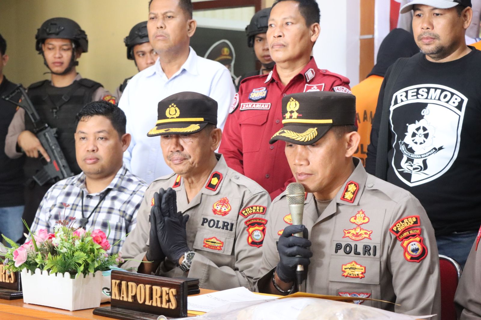 KeizalinNews.Com, SIDRAP (Sulsel) — Kapolres Sidrap AKBP Erwin Syah,SIK didampingi oleh Waka Polres Kompol M.Akib, Kabag Ops Kompol Nasri, Kasat Narkoba AKP Arham Gusdiar, Kasat Reskrim AKP Mihalis, dan Kasi Humas AKP Zakariah menggelar konferensi Pers di Lobby Mapolres. Selasa (27/6/2023).