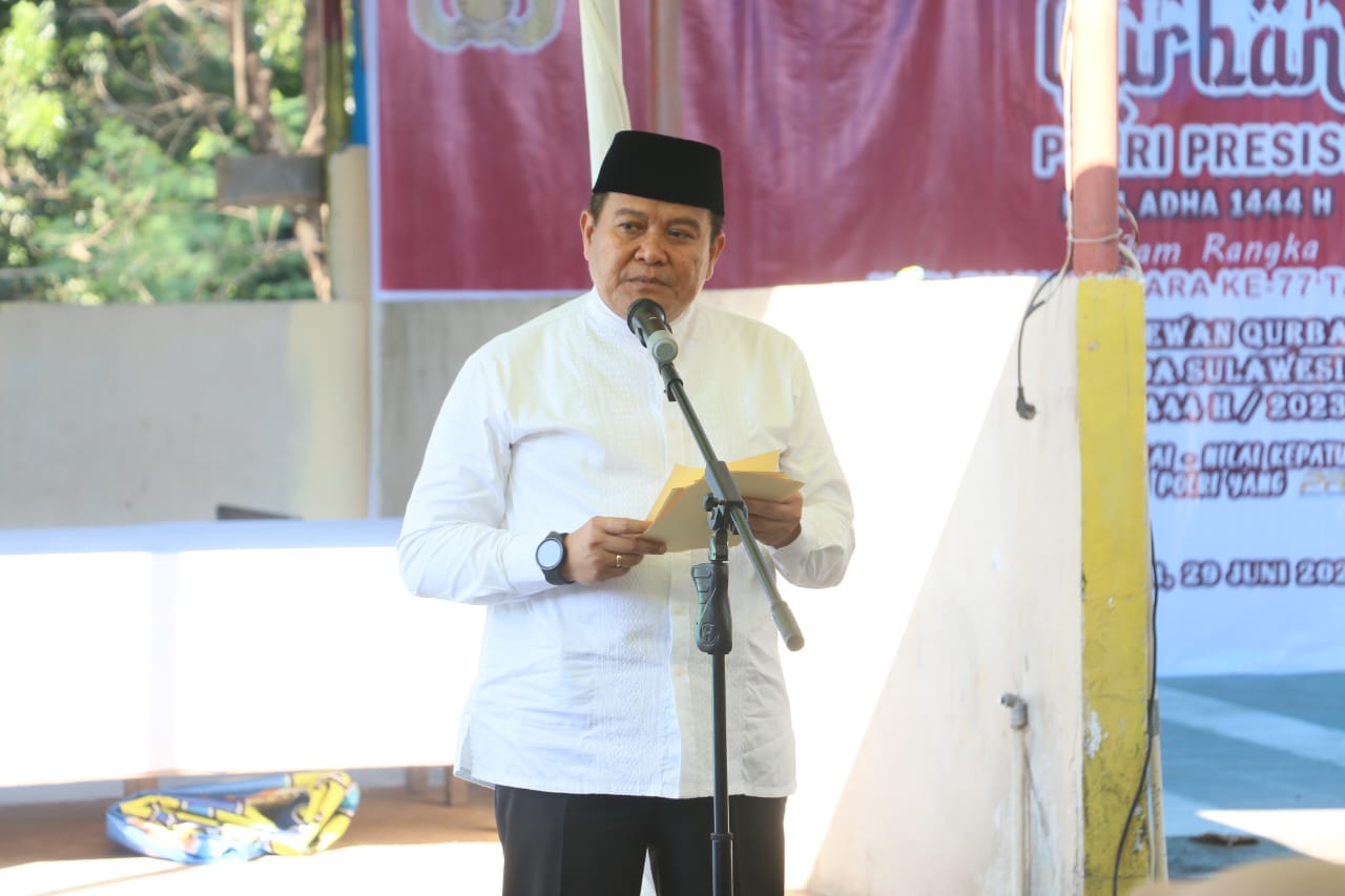Dalam sambutannya, Kapolda Sulsel merasa bersyukur dan bangga sekaligus berterima kasih kepada segenap anggota Polda Sulsel yang telah menunaikan ibadah kurbannya .