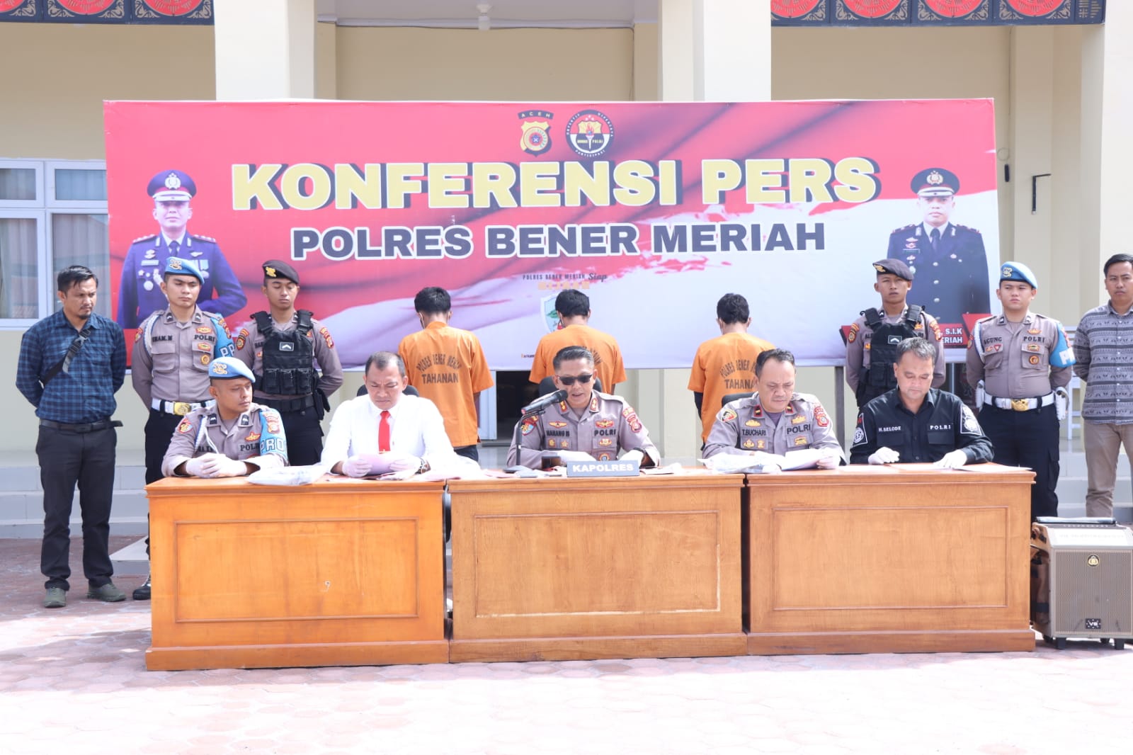 Dari pengungkapan kasus tersebut Polres Bener Meriah menggelar Konferensi Pers pada hari Rabu 5 Juli 2023, di halaman gedung Satreskrim Polres Bener Meriah. Yang di pimpin oleh Kapolres Bener Meriah AKBP Nanang Indra Bakti, S.H., S.I.K.
