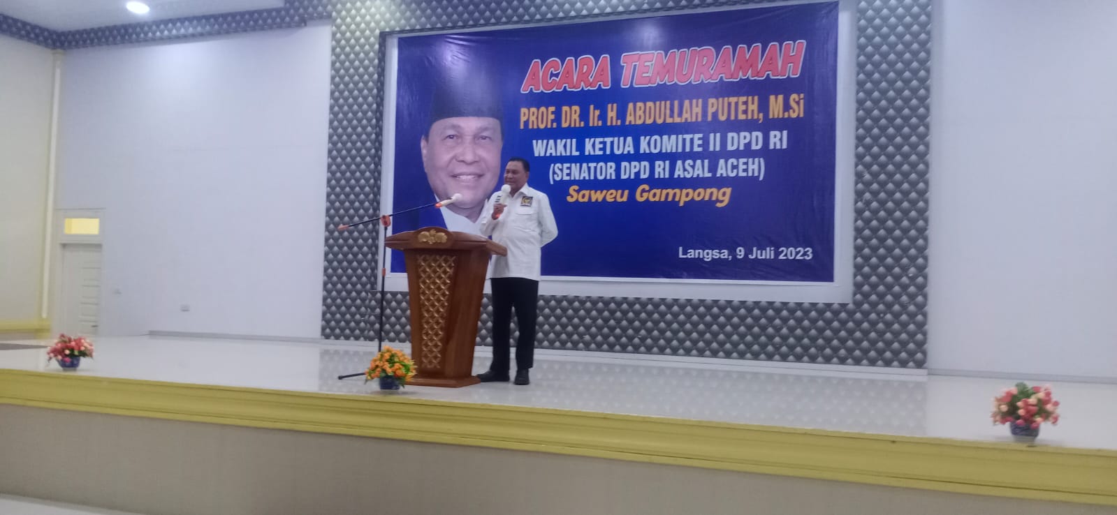 KeizalinNews.Com | Langsa Aceh, – Acara temu ramah Prof. DR.Ir..H. Abdullah puteh M.Si, Wakil Ketua Komite II DPD RI (Senator DPD RI asal Aceh)dengan mengusung tema” Saweu Gampong,” yang diselenggarkan di Balai Room Vitra Tirta, Jalan TM.Bahrum, Kota Langsa minggu (9/7/23).