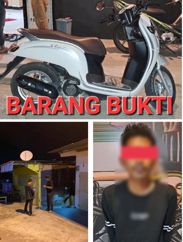 Dari tangan pelaku, team yang mengamankan berhasil menyita barang bukti sebuah kendaraan roda dua jenis matic Scoopy.”