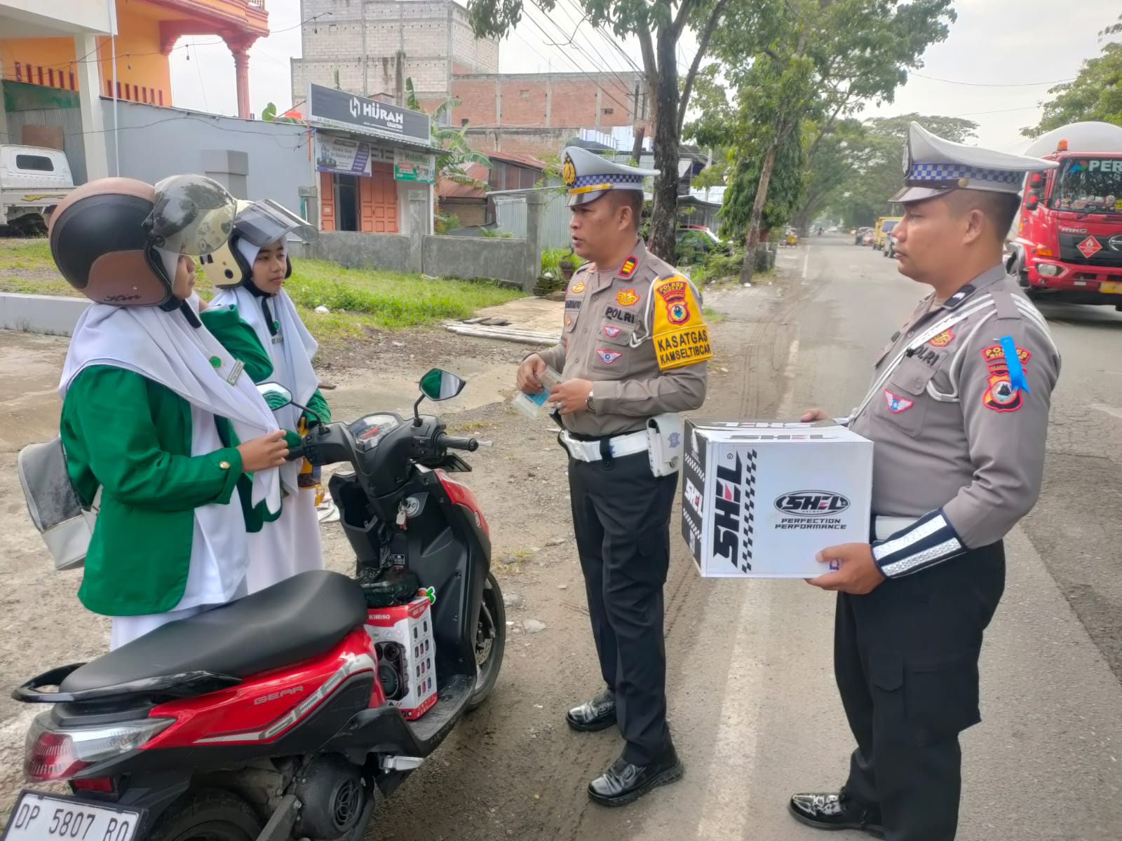 “Pemberian hadiah Helm ini sebagai bentuk penghargaan kepada pengendara karena telah tertib berlalu lintas. Dengan di bagikannya helm ini, pengendara lain dapat termotivasi agar selalu tertib di jalan raya”, Ujarnya.