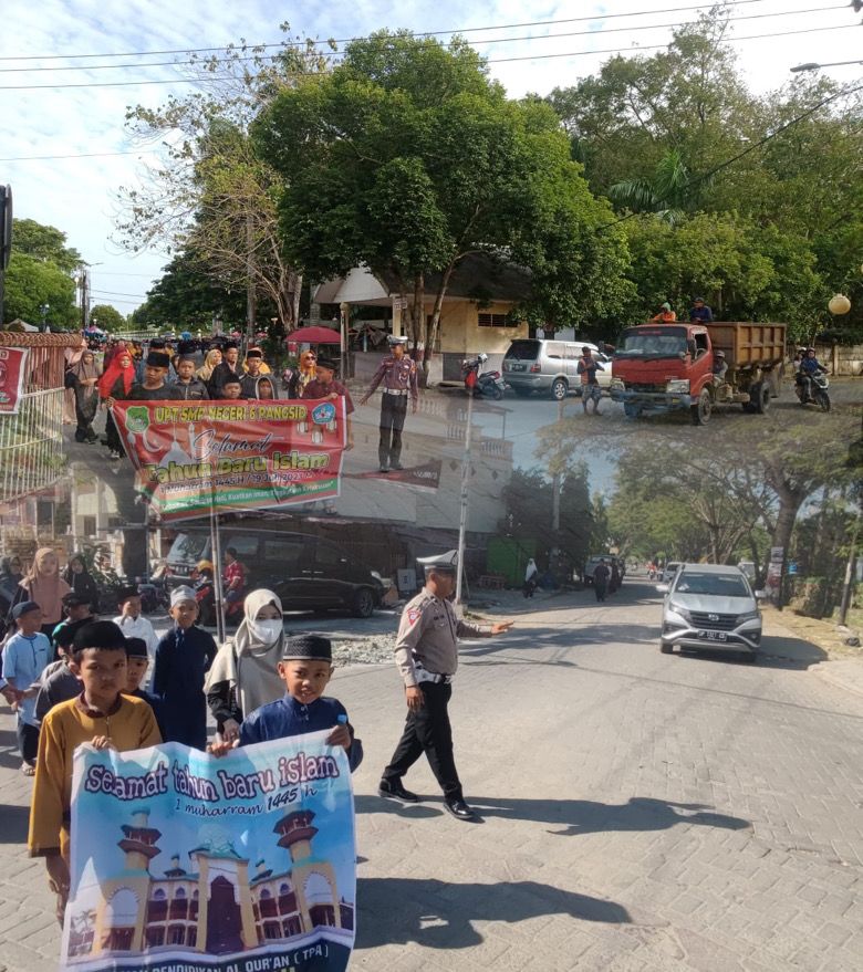 KeizalinNews.Com, SIDRAP (Sulsel) — Dalam rangka menyambut Tahun Baru Islam 1 Muharram 1445 H / Tahun 2023, Polres Sidrap bersama jajaran Polsek melaksanakan Pengamanan, Pengawalan dan Pengaturan Arus Lalu Lintas pada Route yang dilalui peserta Pawai, Rabu (19/7/23) pagi.
