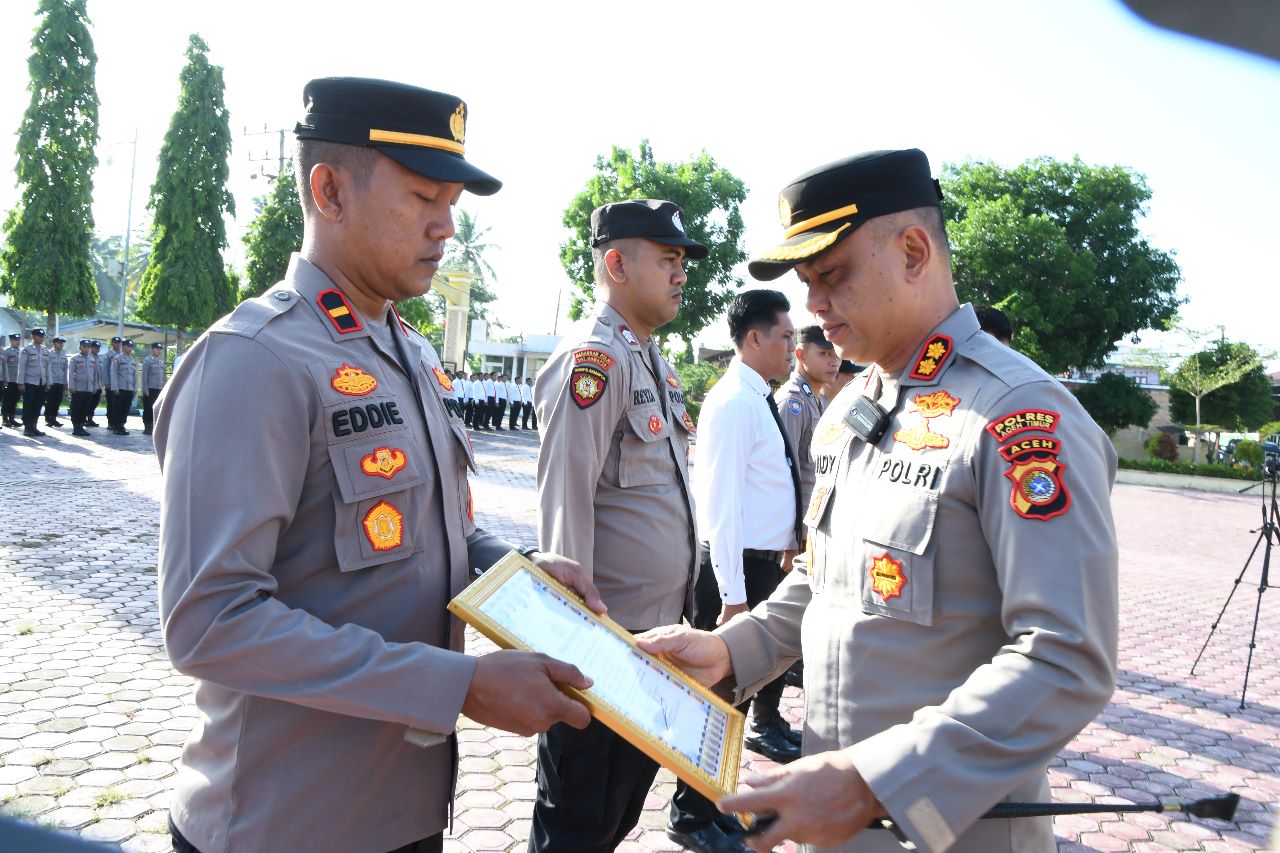“Polri dalam hal ini Polres Aceh Timur juga tidak henti-hentinya memberikan penghargaan kepada personel yang berprestasi dalam tugasnya dan harapan kami dengan pemberian penghargaan kepada personel yang berprestasi, dapat memicu bagi anggota yang lain untuk berlomba mencapai prestasi sesuai bidang tugasnya.” Terang Kapolres Aceh Timur AKBP Andy Rahmansyah, S.I.K.