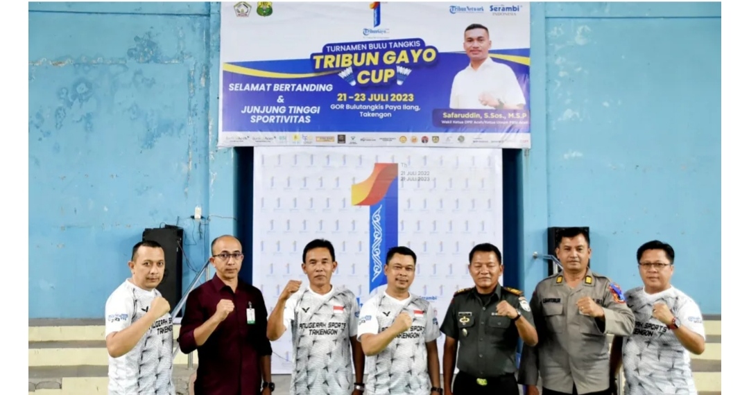 Keizalinnews.com|Takengon– Penjabat Bupati Aceh Tengah T. Mirzuan, MT yang diwakili Staf Ahli Bupati Bidang Pembangunan, Ekonomi dan Keuangan M. Thamrin Elashri Mohd. Ali, SE, M.A.P, membuka secara resmi turnamen bulu tangkis Tribun Gayo Cup dalam rangka memperingati HUT Tribun Gayo yang pertama, berlangsung di Gedung Olah Raga (GOR) bulu tangkis Takengon, Jum’at (21/07/2023).
