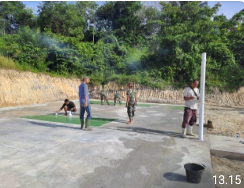 Keizalinnews.com.Langsa I Aceh, – Manunggal Membangun Desa ( TMMD ) ke 117 Kodim Aceh Timur pada pembangunan sasaran fisik lapangan voli kini sudah memasuki tahap finishing.